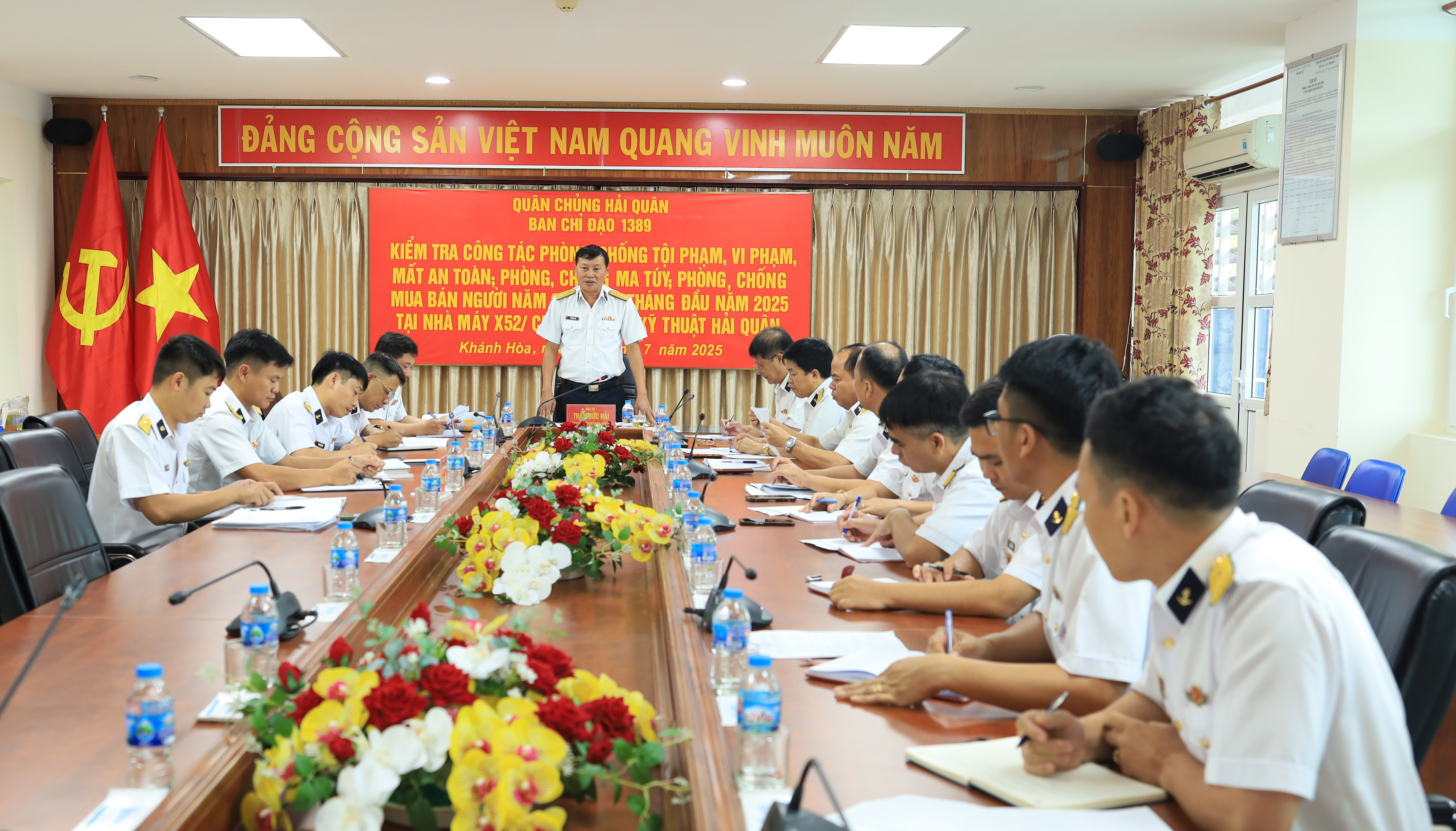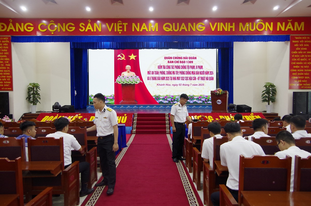 Sáng 2/7, tại Khánh Hòa, đoàn công tác do Đại tá Trần Đức Hải, Trưởng phòng Điều tra Hình sự, Phó Trưởng ban Chỉ đạo 1389 Quân chủng Hải quân làm trưởng đoàn, đã kiểm tra công tác 1389 tại Nhà máy X52, Cục Hậu cần - Kỹ thuật Hải quân.