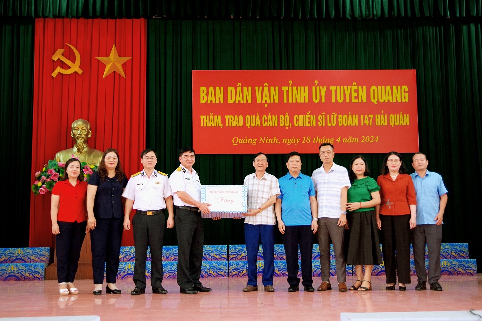 Ngày 17/4, tại thị xã Quảng Yên, tỉnh Quảng Ninh, đoàn công tác của Ban Dân vận Tỉnh ủy Tuyên Quang do đồng chí Lê Văn Quốc, Phó Trưởng ban Thường trực Ban Dân vận Tỉnh ủy làm trưởng đoàn đã đến thăm và làm việc với Lữ đoàn 147 (Vùng 1 Hải quân).