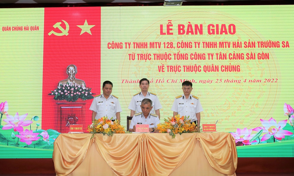 Sáng 25/4, tại TP. Hồ Chí Minh, Quân chủng Hải quân đã tổ chức Lễ bàn giao Công ty TNHH MTV 128 (Công ty 128) và Công ty TNHH MTV Hải sản Trường Sa (Công ty Hải sản Trường Sa) từ trực thuộc Tổng công ty Tân cảng Sài Gòn về trực thuộc Quân chủng Hải quân.