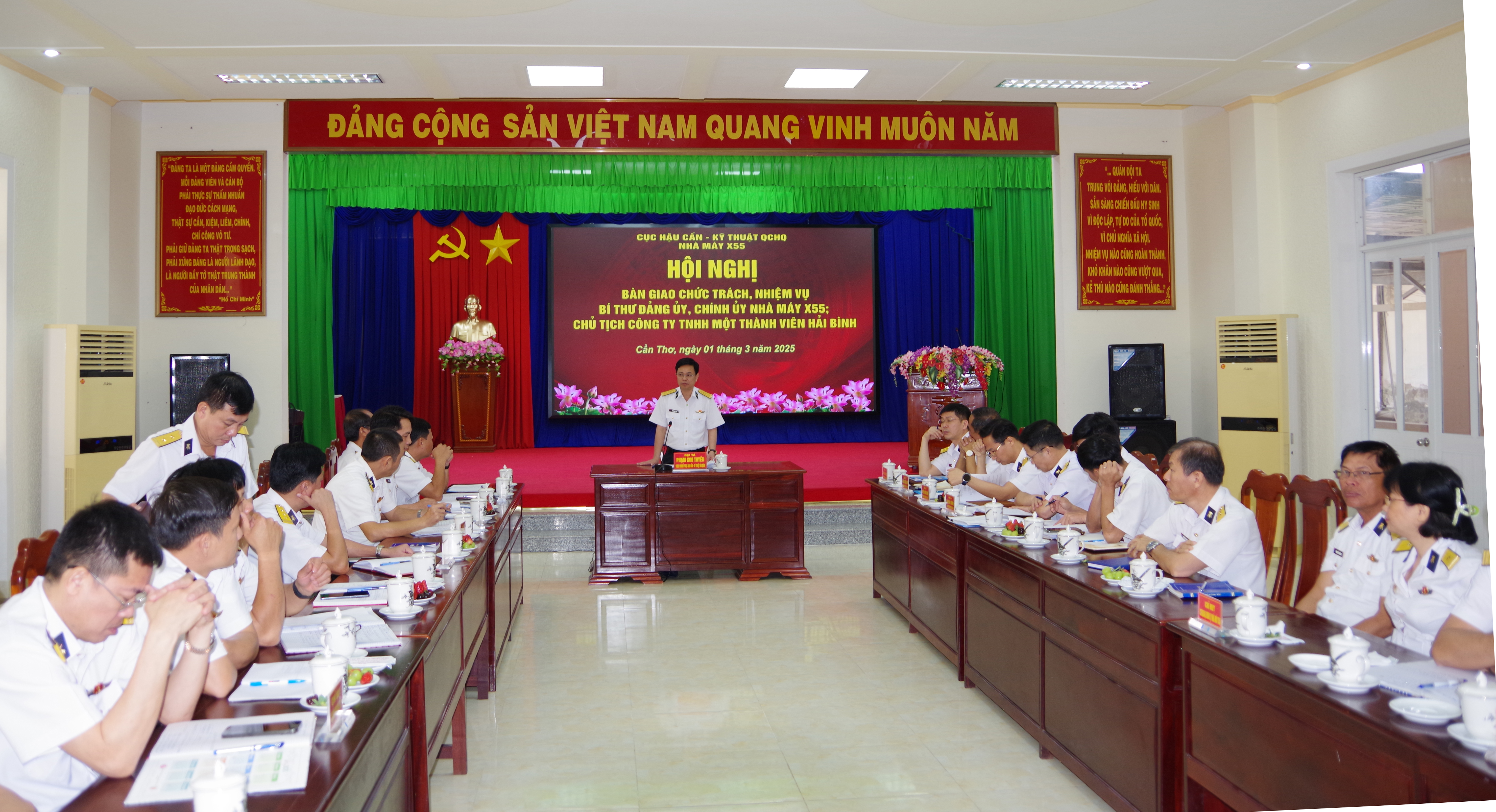 Ngày 1/3, tại TP. Cần Thơ, Nhà máy X55, Cục Hậu cần - Kỹ thuật Hải quân tổ chức Hội nghị bàn giao chức trách, nhiệm vụ Bí thư Đảng ủy, Chính ủy Nhà máy (Chủ tịch Công ty TNHH MTV Hải Bình).
