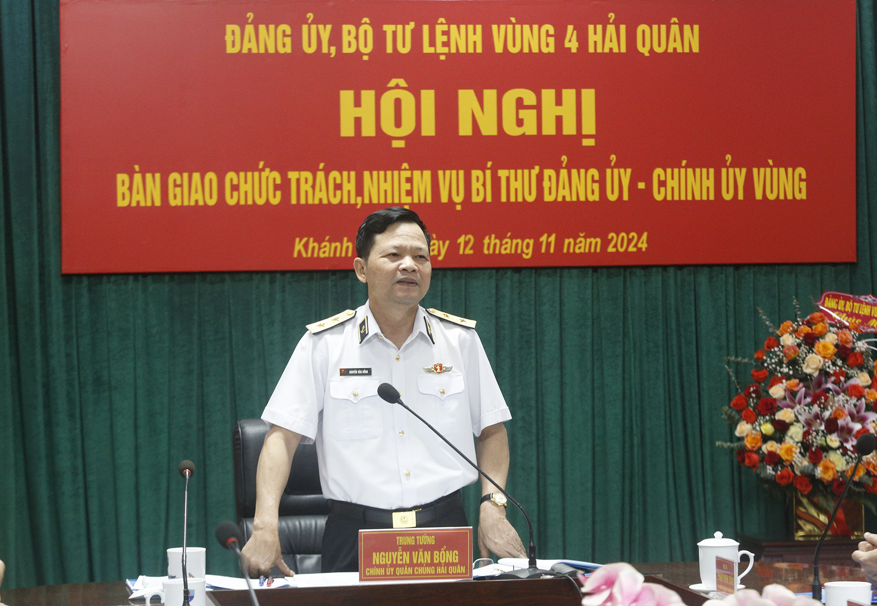 Sáng 12/11, tại TP. Cam Ranh, tỉnh Khánh Hòa, Đảng ủy, Bộ Tư lệnh Vùng 4 Hải quân tổ chức Hội nghị bàn giao chức trách, nhiệm vụ Bí thư Đảng ủy, Chính ủy Vùng 4. Trung tướng Nguyễn Văn Bổng, Bí thư Đảng ủy, Chính ủy Hải quân dự và chủ trì.