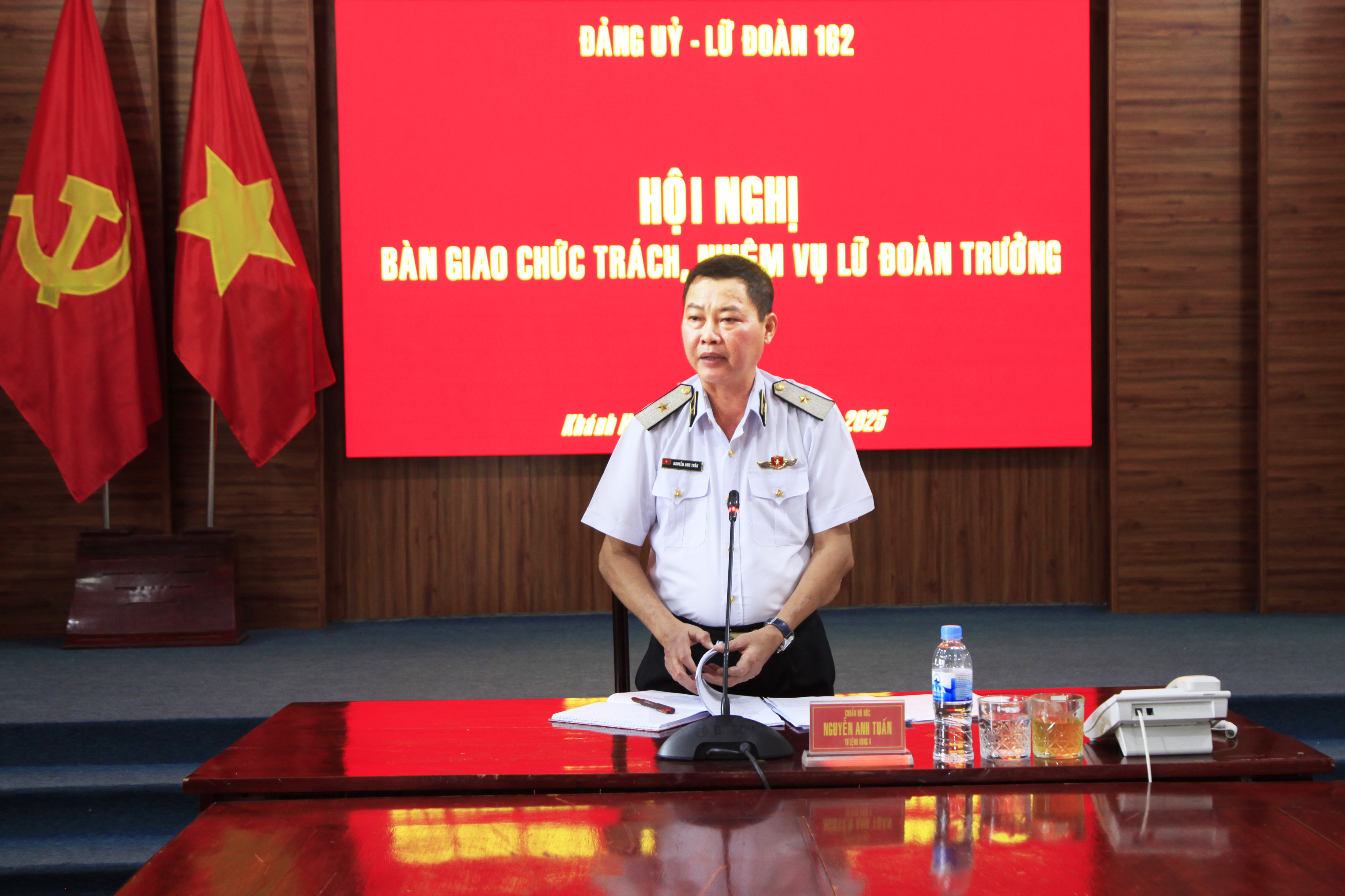 Chiều 23/5, tại thành phố Cam Ranh, tỉnh Khánh Hòa, Lữ đoàn 162, Vùng 4 Hải quân tổ chức Hội nghị bàn giao chức trách, nhiệm vụ Lữ đoàn trưởng. Chuẩn Đô đốc Nguyễn Anh Tuấn, Tư lệnh Vùng 4 dự, chủ trì.