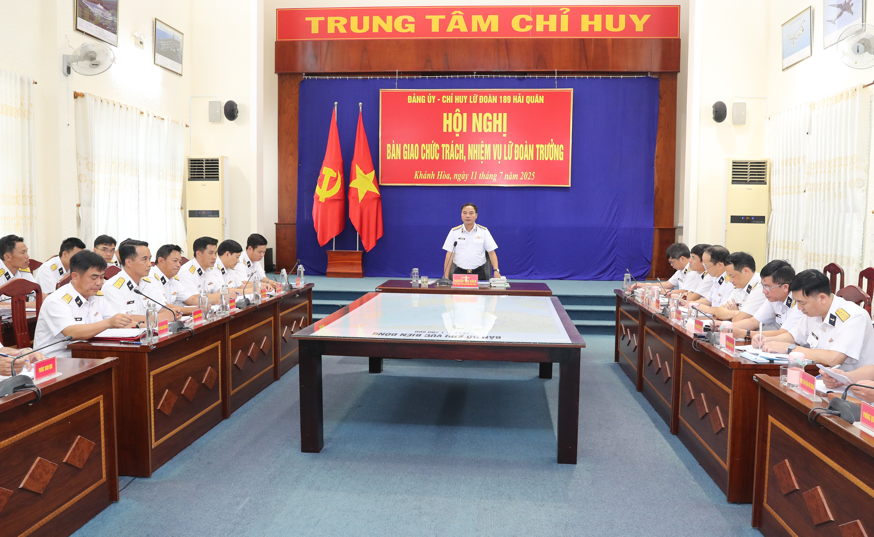 Chiều 11/7, tại Khánh Hòa, Chuẩn Đô đốc Nguyễn Văn Bách, Phó Tư lệnh, Tham mưu trưởng Hải quân chủ trì hội nghị bàn giao chức trách, nhiệm vụ Lữ đoàn trưởng Lữ đoàn Tàu ngầm 189.
