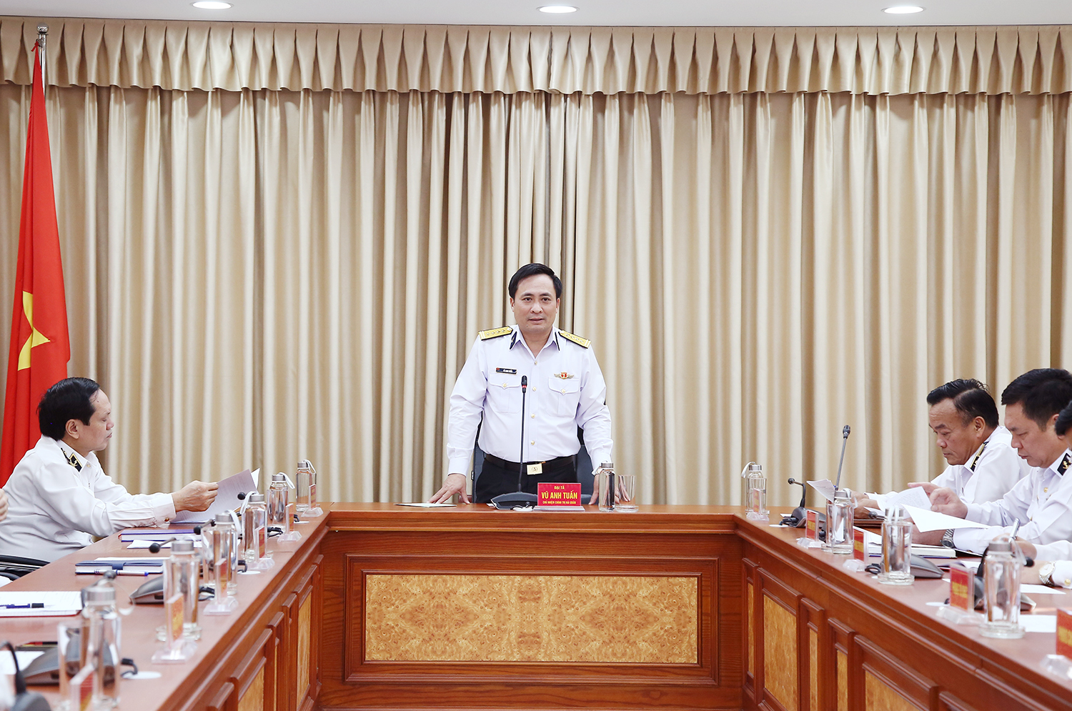 Phát biểu tại hội nghị, Đại tá Vũ Anh Tuấn chúc mừng Chuẩn Đô đốc Phạm Văn Luyện và Chuẩn Đô đốc Phạm Văn Quang đã hoàn thành xuất sắc nhiệm vụ mà Đảng, Nhà nước, Quân đội và nhân dân giao phó. Trong suốt những năm phục vụ trong quân ngũ, hai đồng chí đã trải qua nhiều cương vị công tác và có nhiều đóng góp cho Quân chủng Hải quân và Cục Chính trị.