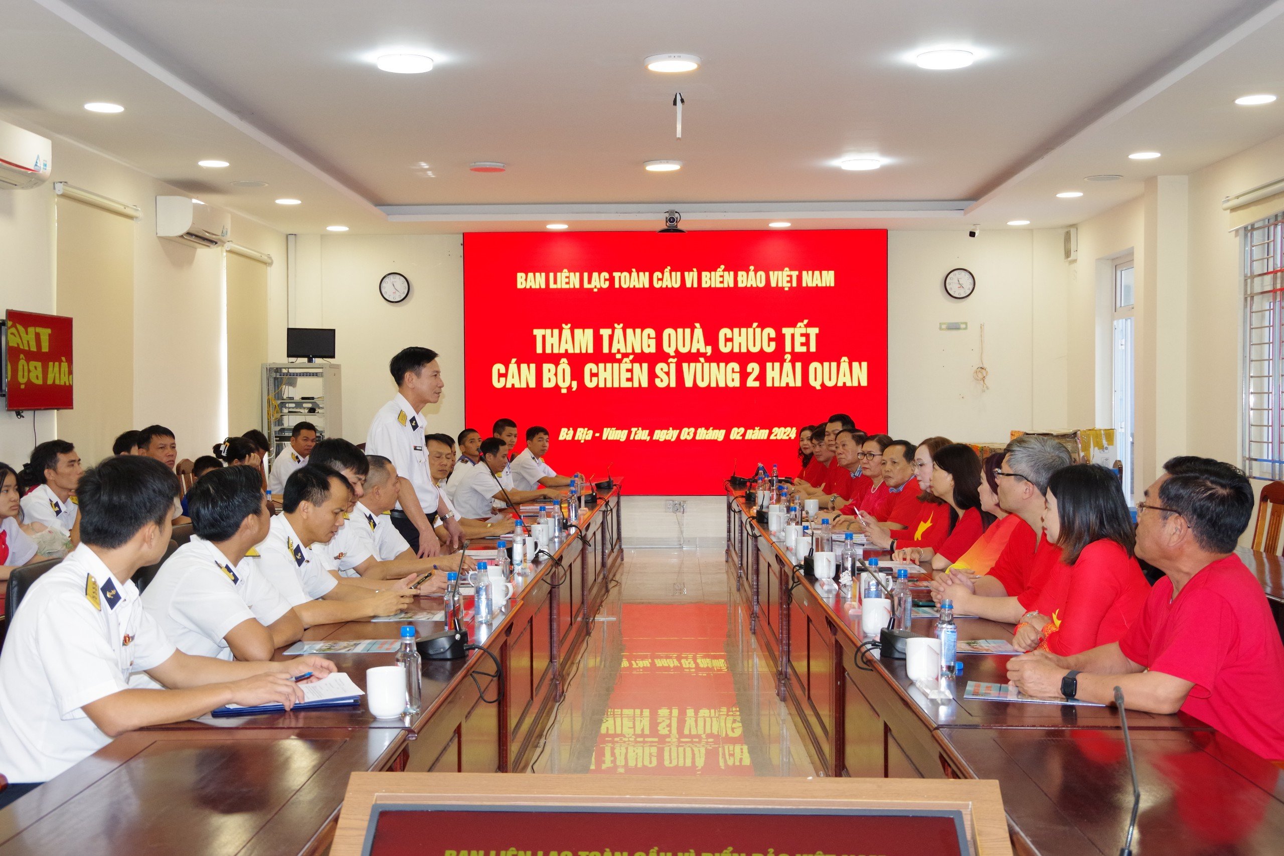 Chiều 3/2, tại thành phố Vũng Tàu, tỉnh Bà Rịa - Vũng Tàu, Ban liên lạc toàn cầu vì biển, đảo Việt Nam đã đến thăm, tặng quà, chúc Tết cán bộ, chiến sĩ Vùng 2 Hải quân. Đại tá Đỗ Hồng Duyên, Chủ nhiệm Chính trị Vùng chủ trì tiếp đoàn.