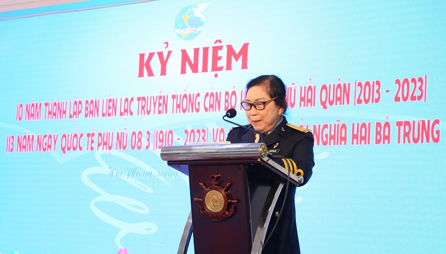 Sau khi ôn lại lịch sử Ngày Quốc tế phụ nữ 8/3 và truyền thống của phụ nữ Việt Nam, đồng chí Nguyễn Thị Hồi, Trưởng ban liên lạc truyền thống cán bộ hội phụ nữ Hải quân đã báo cáo kết quả hoạt động của Ban liên lạc trong 10 năm qua.
