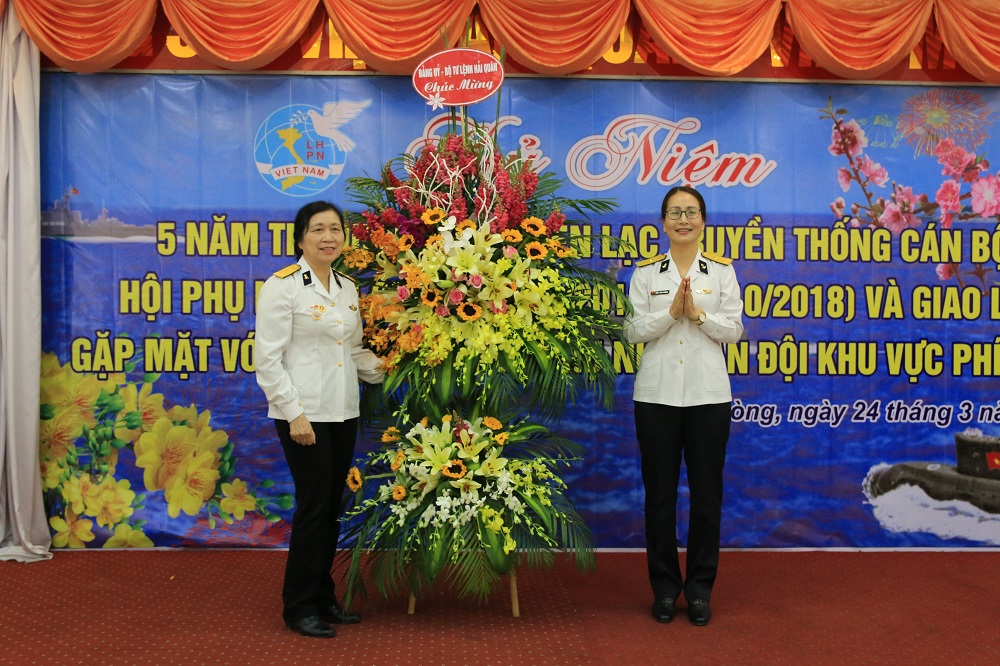 Thiếu tá Trần Thị Bích Phương, Trưởng ban Phụ nữ Hải quân cùng đại diện Ban Công đoàn Hải quân; Ban Chính trị, Phòng Kế hoạch Tổng hợp Cục Chính trị và một số đơn vị trong Quân chủng đã tới dự. Buổi gặp mặt, giao lưu còn được đón các đại biểu nguyên là thủ trưởng Bộ Tư lệnh, nguyên thủ trưởng Cục Chính trị Hải quân, nguyên Trưởng ban Phụ nữ Quân đội và gần 100 cán bộ hội phụ nữ đã nghỉ hưu…