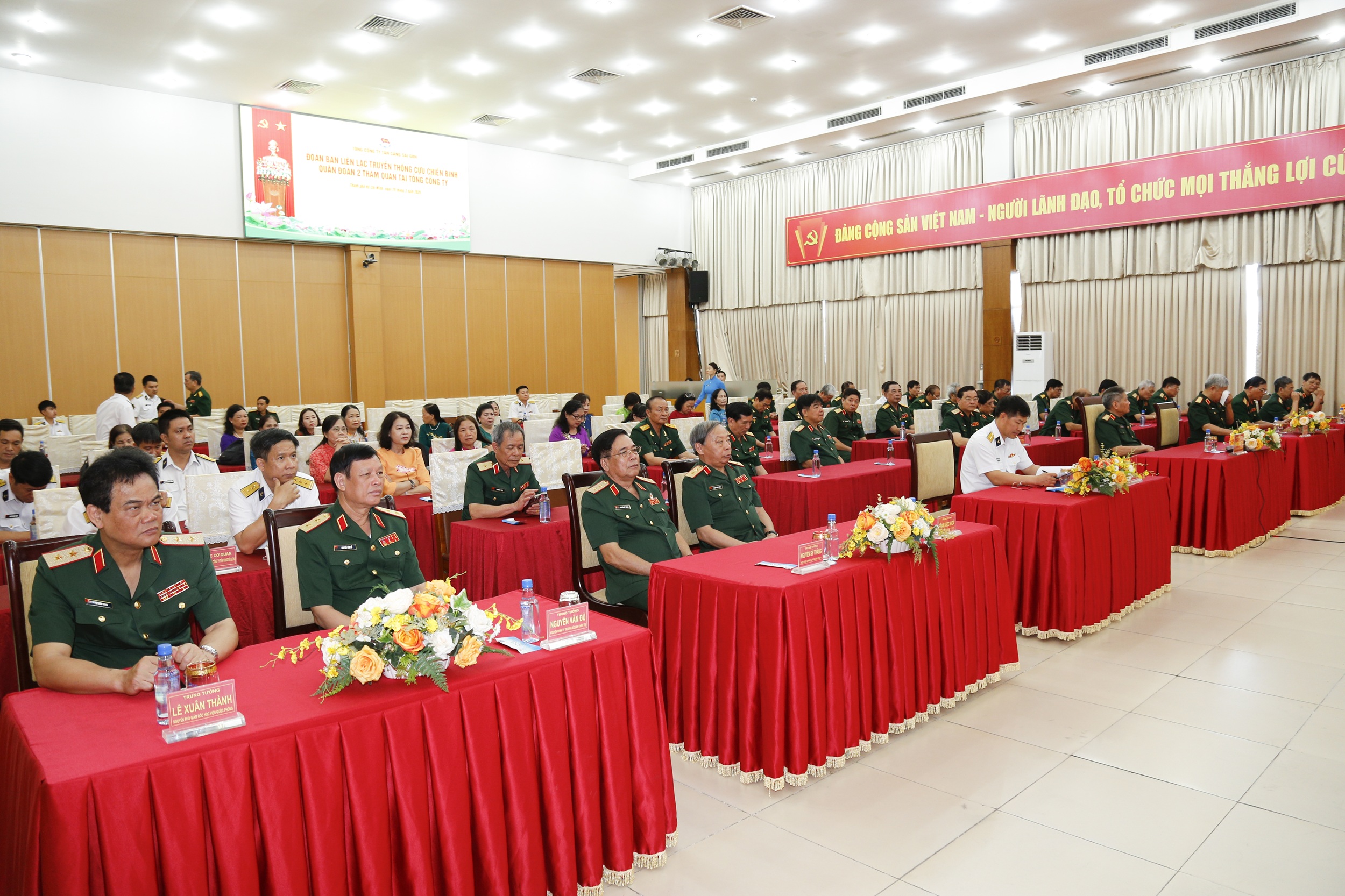 Đồng chí Phó tổng giám đốc cũng thông tin đến đoàn đại biểu một số kết quả nổi bật trong thực hiện nhiệm vụ quân sự, quốc phòng và sản xuất kinh doanh trong thời gian qua, khẳng định bằng ý chí quyết tâm, chung sức đồng lòng, tiếp bước cha anh, cán bộ, người lao động Tân cảng Sài Gòn quyết tâm hoàn thành các nhiệm vụ, cùng với các lực lượng trong Quân chủng Hải quân bảo vệ vững chắc chủ quyền Tổ quốc trong tình hình mới.