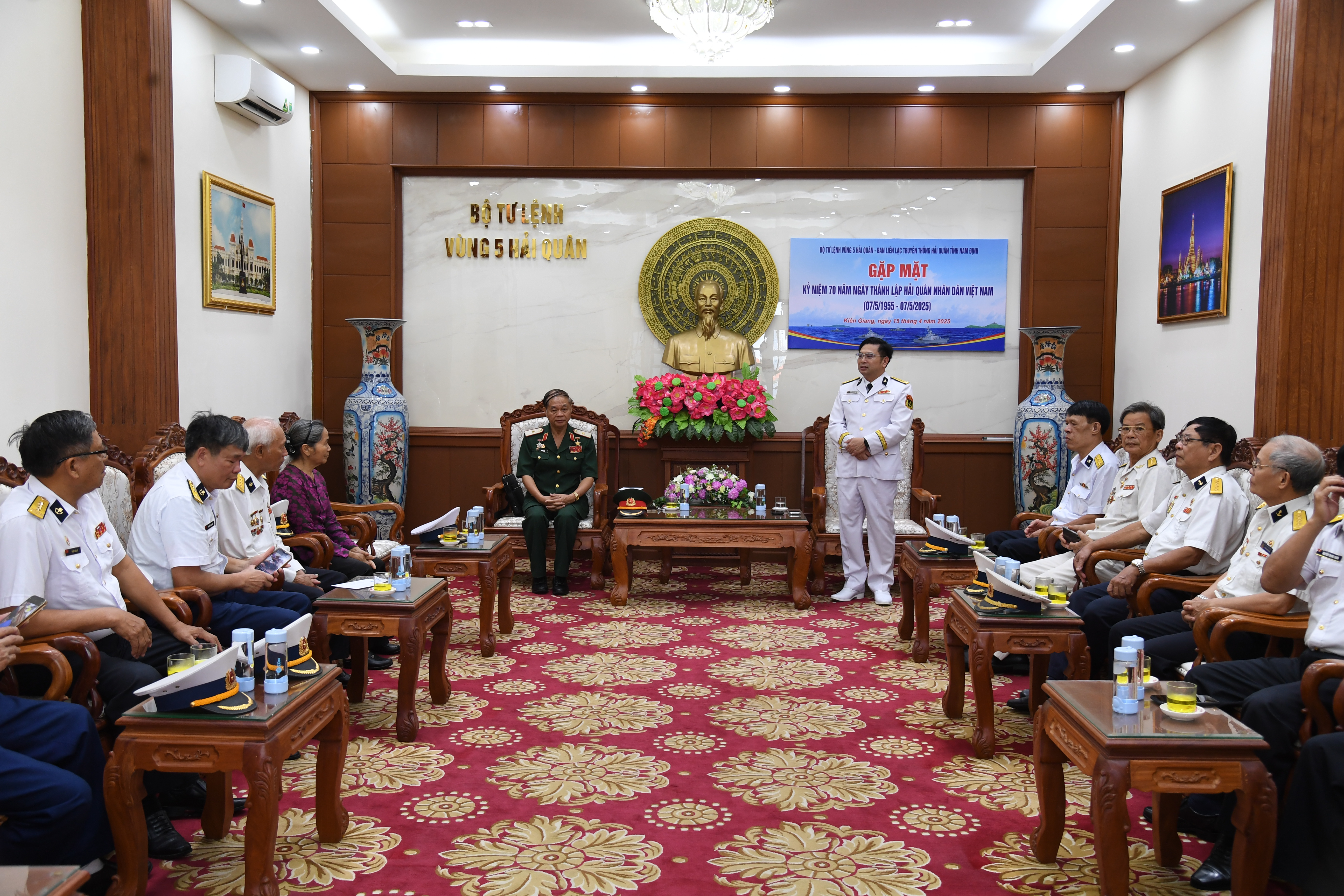 Sáng 15/4, tại TP. Phú Quốc, tỉnh Kiên Giang, Ban liên lạc truyền thống Hải quân tỉnh Nam Định do Thiếu tướng, Anh hùng lực lượng vũ trang nhân dân Hoàng Kiền, nguyên Tư lệnh Binh chủng Công binh, nguyên Trung đoàn trưởng Trung đoàn Công binh 83 Hải quân làm trưởng đoàn, đến thăm Bộ Tư lệnh Vùng 5 Hải quân. Đại tá Trịnh Xuân Tùng, Tư lệnh Vùng chủ trì tiếp đoàn.