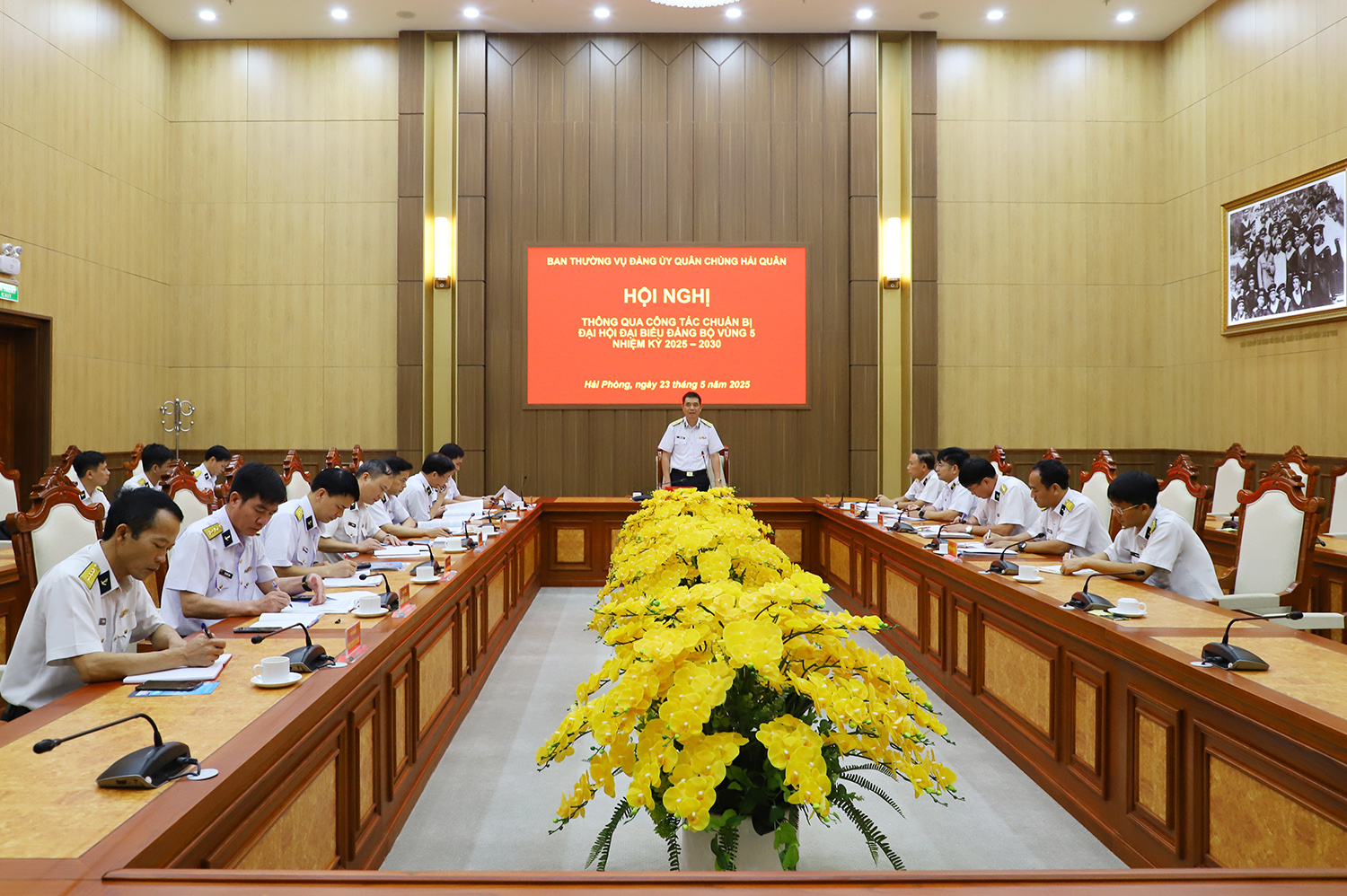 Sáng 23/5, tại Hải Phòng, Ban Thường vụ Đảng ủy Quân chủng Hải quân tổ chức Hội nghị thông qua công tác chuẩn bị tổ chức Đại hội đại biểu Đảng bộ Vùng 5 Hải quân nhiệm kỳ 2025-2030. Thiếu tướng Nguyễn An Phong, Bí thư Đảng ủy, Chính ủy Quân chủng chủ trì.