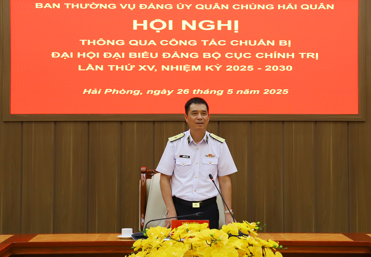 Chiều 26/5, tại Hải Phòng, Ban Thường vụ Đảng ủy Quân chủng Hải quân tổ chức Hội nghị thông qua công tác chuẩn bị tổ chức Đại hội đại biểu Đảng bộ Cục Chính trị lần thứ XV nhiệm kỳ 2025-2030. Thiếu tướng Nguyễn An Phong, Bí thư Đảng ủy, Chính ủy Hải quân chủ trì.