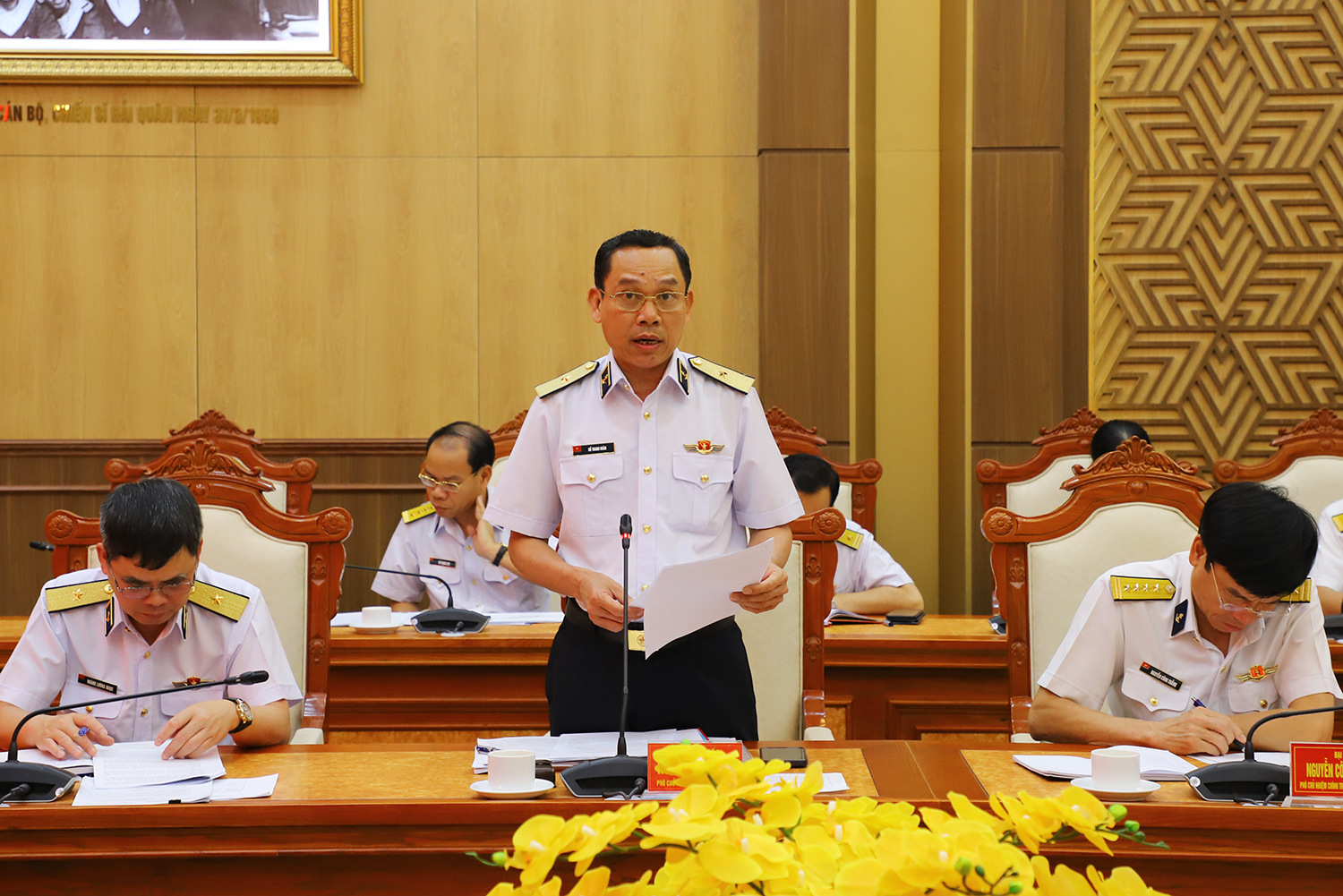Chuẩn Đô đốc Hồ Thanh Hoàn báo cáo nội dung công tác chuẩn bị đại hội