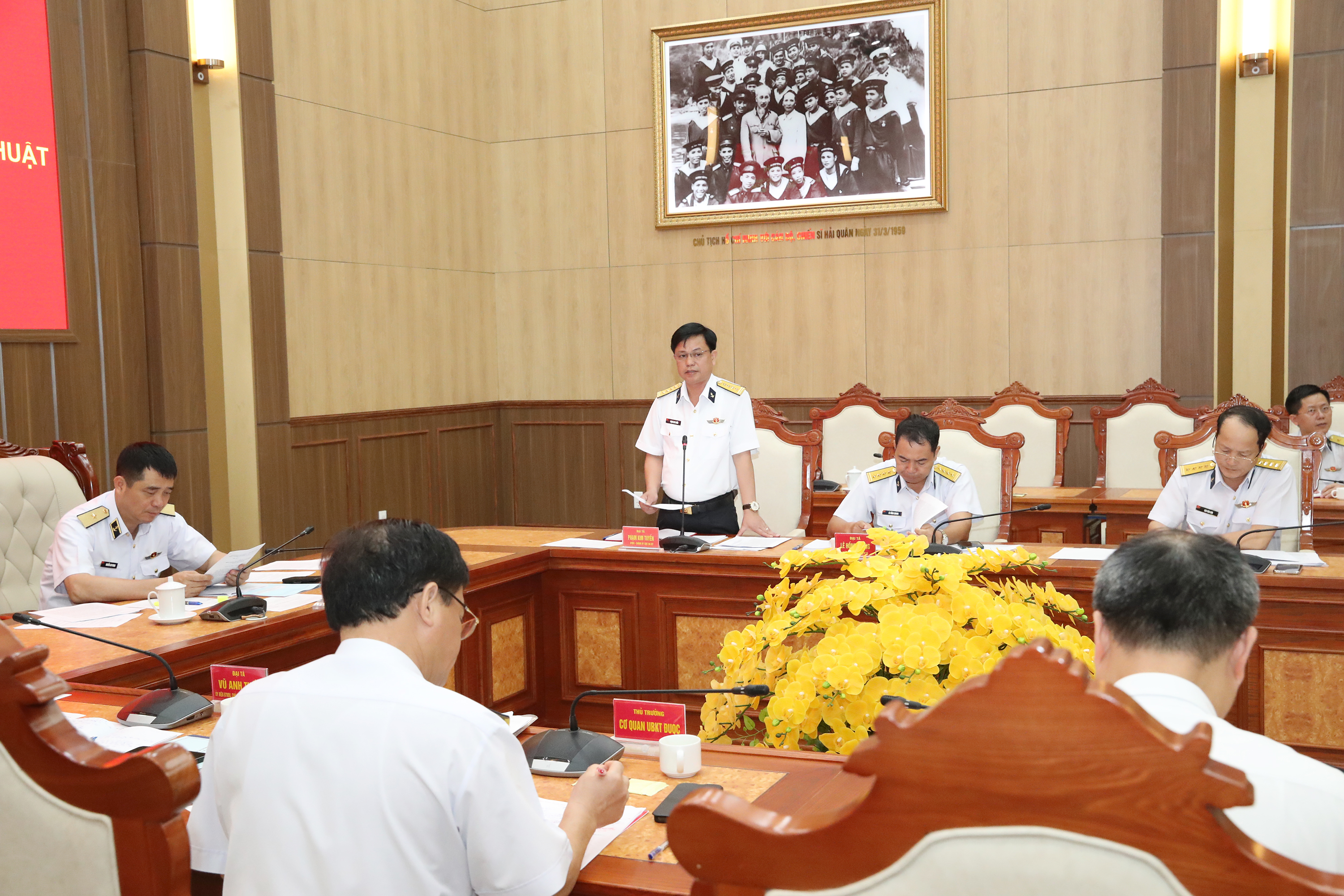 Thiếu tướng Nguyễn An Phong, Bí thư Đảng ủy, Chính ủy Hải quân chủ trì hội nghị thông qua.