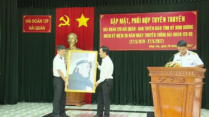 Chiều 26 - 5, tại Vũng Tàu, đoàn cán bộ Ban Tuyên giáo Tỉnh ủy Bình Dương do đồng Bùi Hữu Toàn, Phó Trưởng ban Tuyên giáo làm trưởng đoàn cùng đại diện Sở Thông tin Truyền thông, Báo, Đài thát thanh, truyền hình Bình Dương đến thăm và làm việc tại Hải đoàn 129 Hải quân, nhân dịp kỷ niệm 39 năm Ngày thành lập Hải đoàn (27-5-1978 – 27-5-2017).