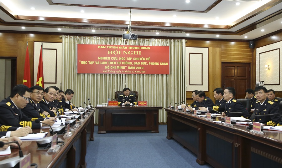 Tại điểm cầu Bộ Tư lệnh Hải quân, Chuẩn Đô đốc Phạm Văn Vững, Bí thư Đảng ủy, Chính ủy Hải quân chủ trì. Tham gia tại các điểm cầu của Quân chủng có gần 390 cán bộ chủ chốt các cơ quan, đơn vị.