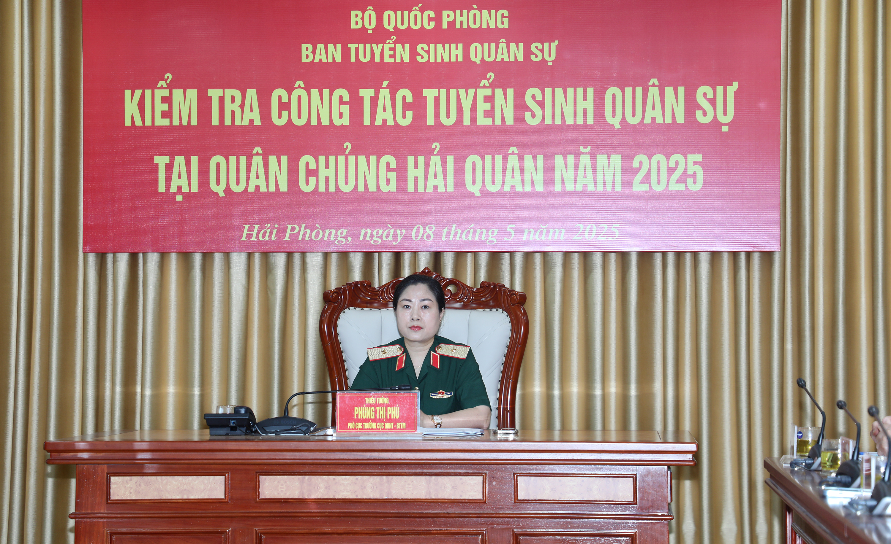 Sáng 8/5, tại Hải Phòng, đoàn công tác của Ban Tuyển sinh quân sự (TSQS) Bộ Quốc phòng do Thiếu tướng Phùng Thị Phú, Phó Cục trưởng Cục Quân huấn - Nhà trường (Bộ Tổng Tham mưu), làm trưởng đoàn, đã tiến hành kiểm tra công tác TSQS năm 2025 tại Quân chủng Hải quân.
