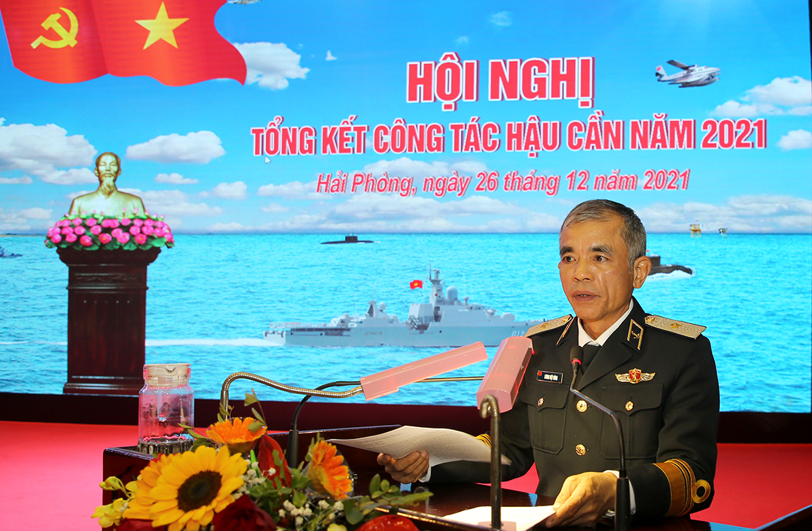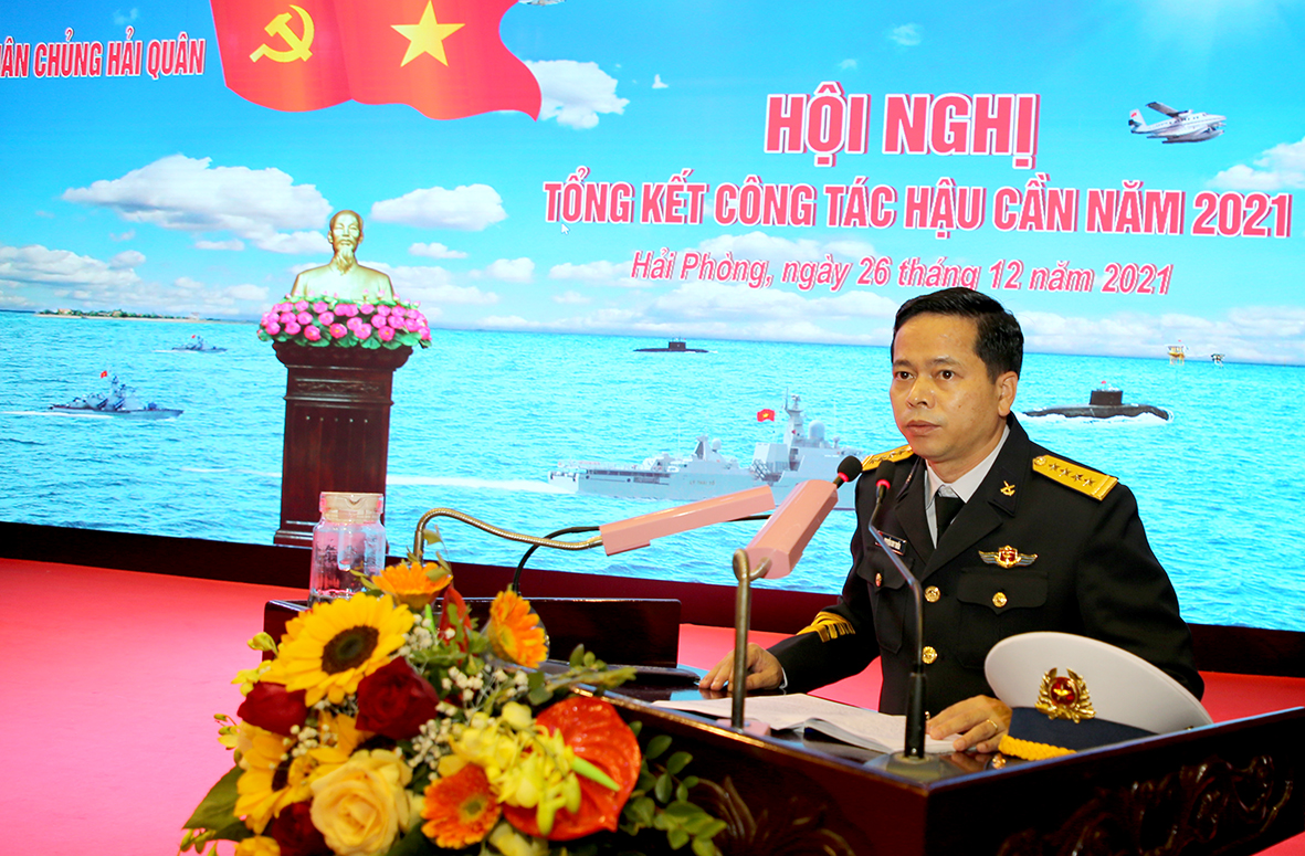 Chiều 26/12, Quân chủng tổ chức Hội nghị tổng kết công tác hậu cần năm 2021. Chuẩn Đô đốc Lương Việt Hùng, Phó Tư lệnh Hải quân dự và chỉ đạo. Đại tá Nguyễn Duy Thiều, Chủ nhiệm Hậu cần Hải quân chủ trì.
