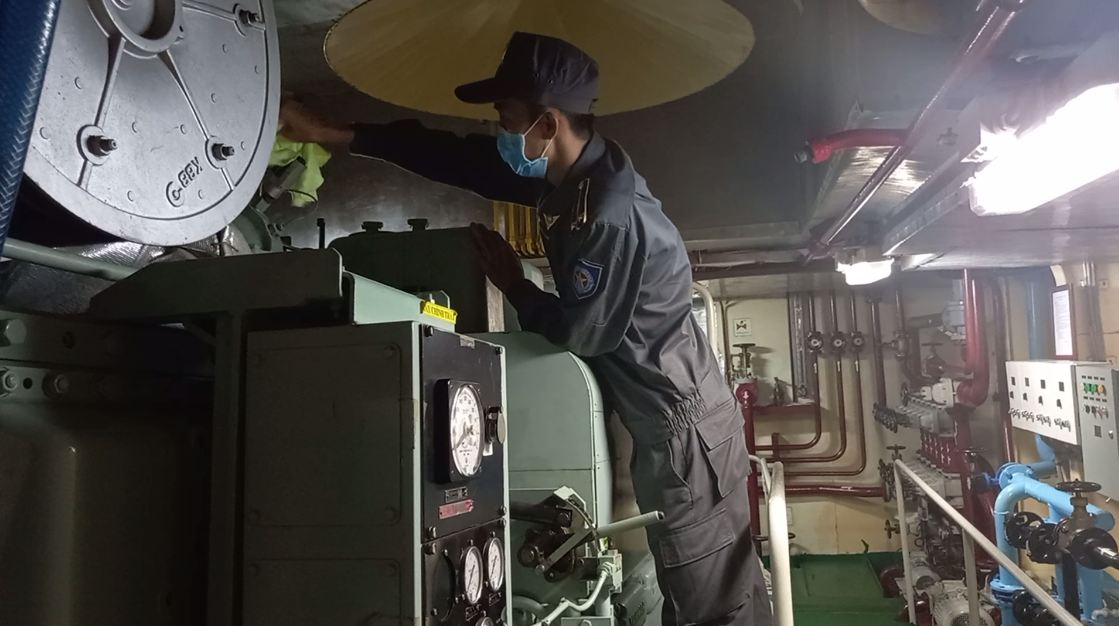 Nhân viên tàu kiểm ngư thực hiện công tác bảo quản dự phòng