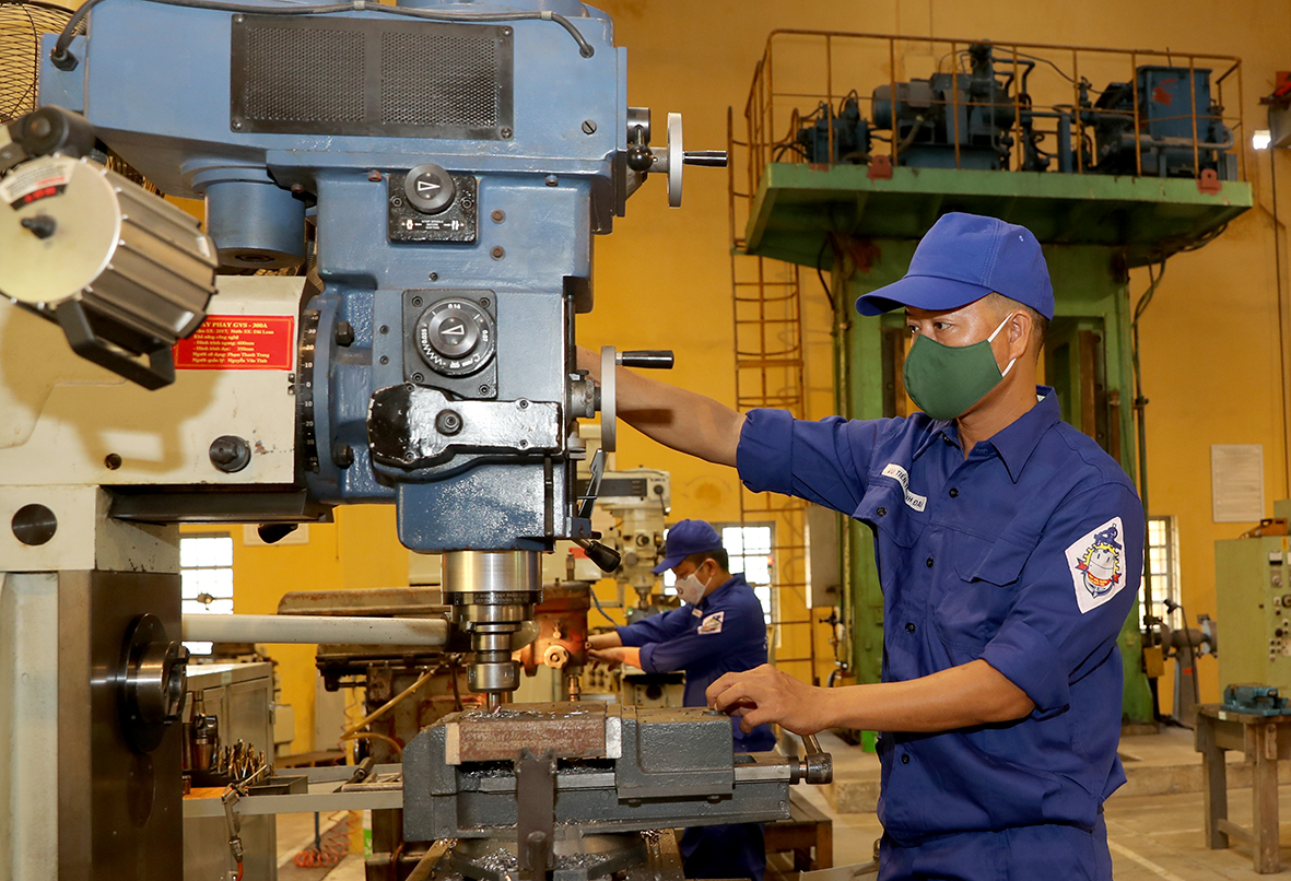 Nhân viên Xưởng cơ khí của Nhà máy trong giờ sản xuất. Ảnh: Duy Khánh