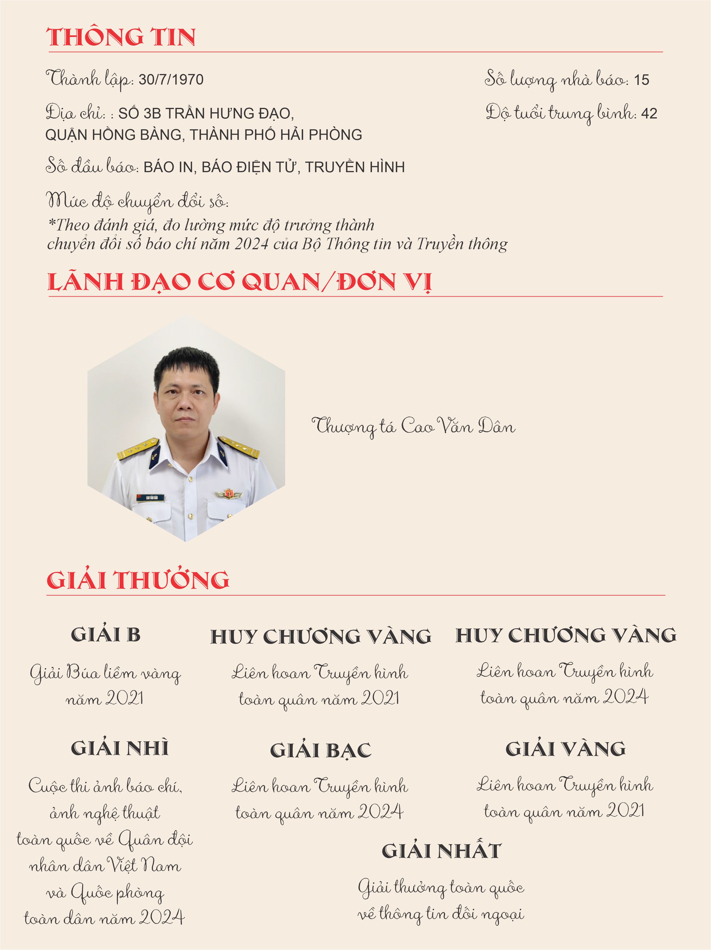 Nhiều nhà báo mang quân hàm áo lính miệt mài lăn lộn trên các vùng biển đảo, trong các hải trình đầy khó khăn, thử thách như nhà báo Tô Hải Nam, nguyên Tổng Biên tập; nhà báo Nguyễn Trọng Thiết, Phó tổng biên tập; nhà báo Vũ Văn Hưởng, Phạm Quang Thanh, Phạm Đức Tuấn…