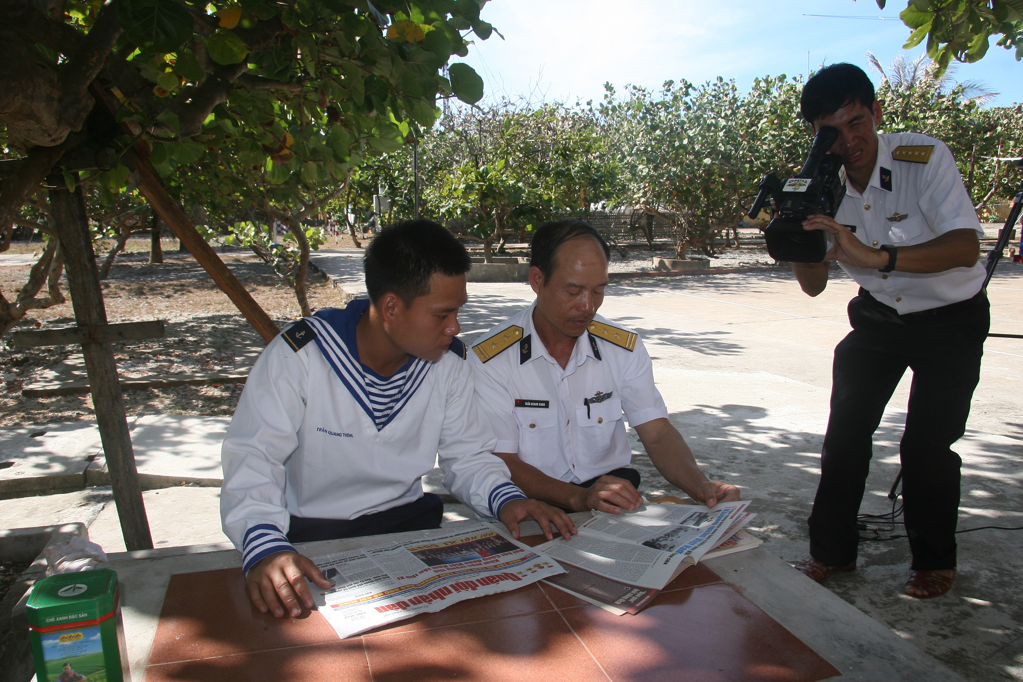 Phóng viên Báo Hải quân Việt Nam tác nghiệp trên đảo Trường Sa