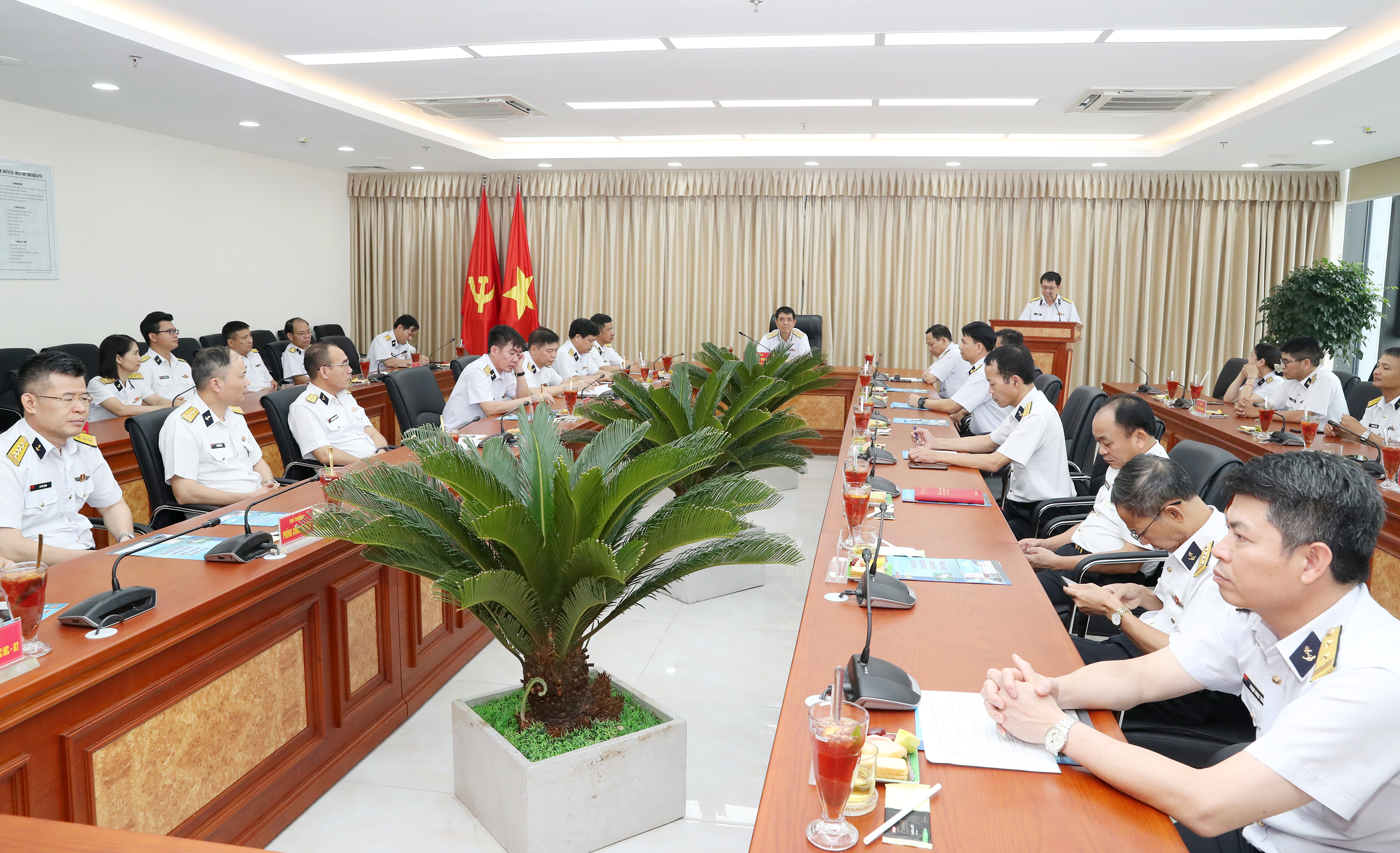Tại buổi gặp mặt, thủ trưởng Bộ Tham mưu, Cục Chính trị, Cục Hậu cần-Kỹ thuật đã tặng hoa chúc mừng cán bộ, phóng viên Báo Hải quân Việt Nam.