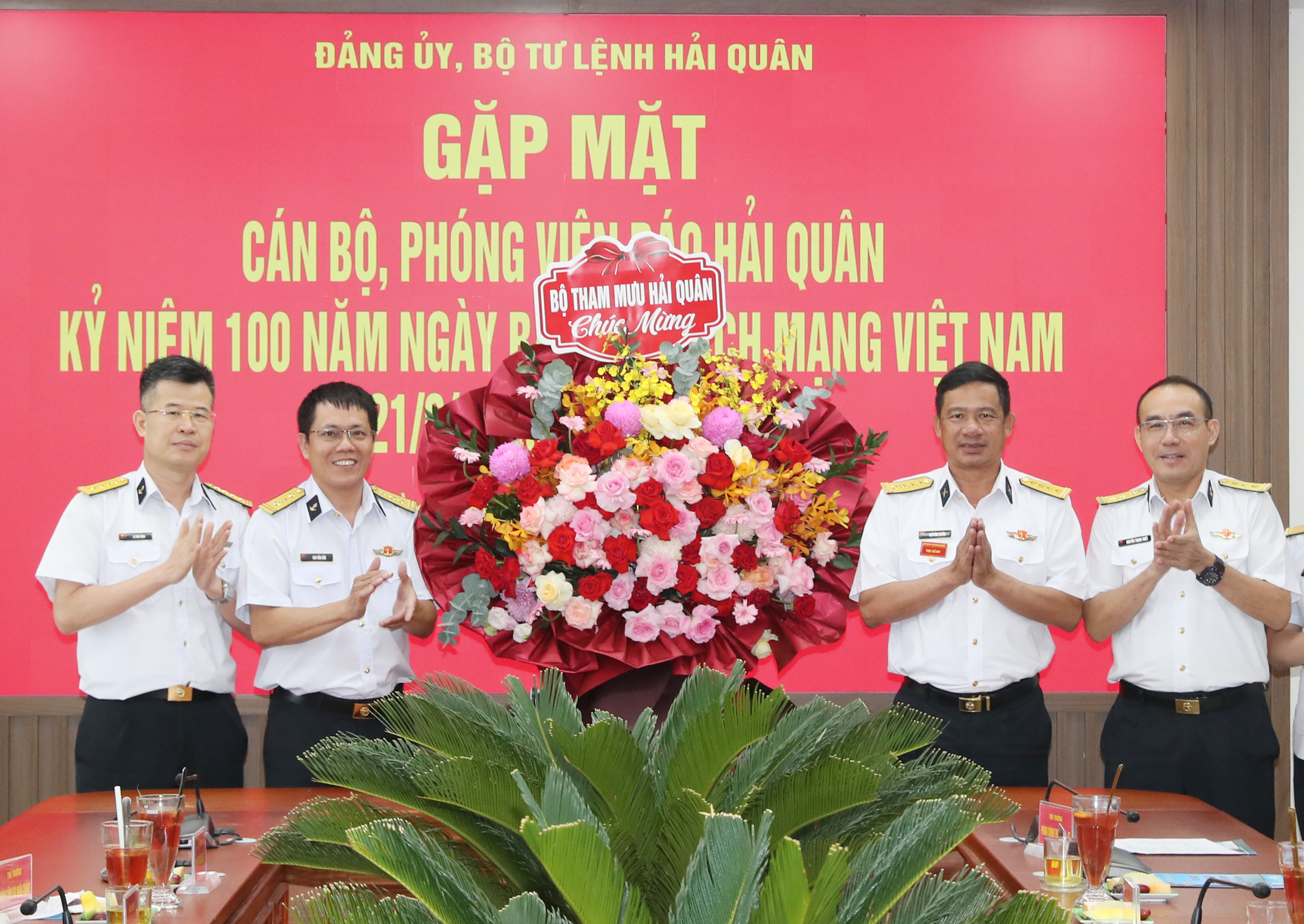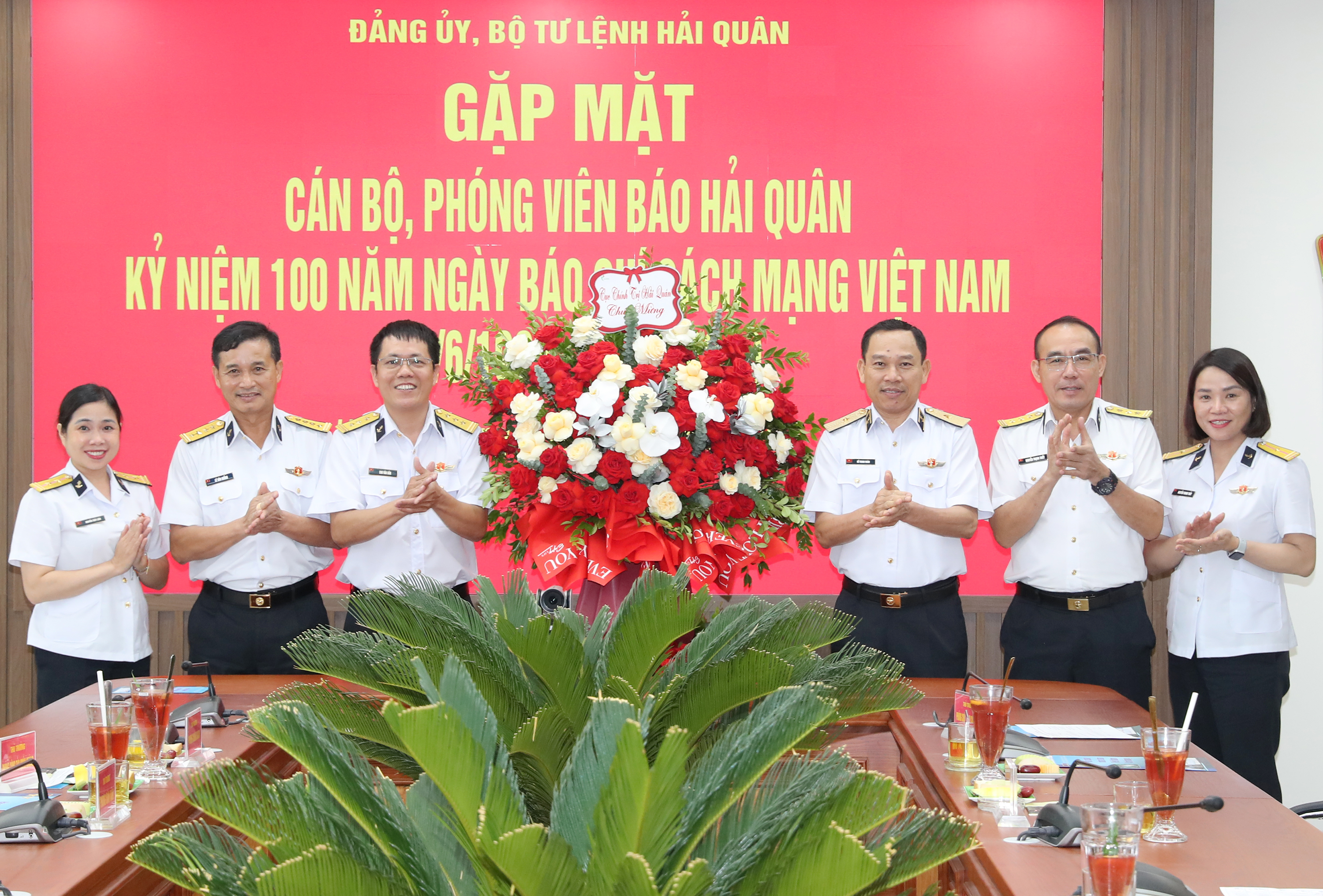 Nhân dịp kỷ niệm 100 năm Ngày báo chí cách mạng Việt Nam, đồng chí Chính ủy Quân chủng Hải quân đã tặng hoa và chúc cán bộ, phóng viên Báo Hải quân Việt Nam sức khỏe, đoàn kết, nỗ lực khắc phục khó khăn, tiếp tục hoàn thành tốt nhiệm vụ được giao.