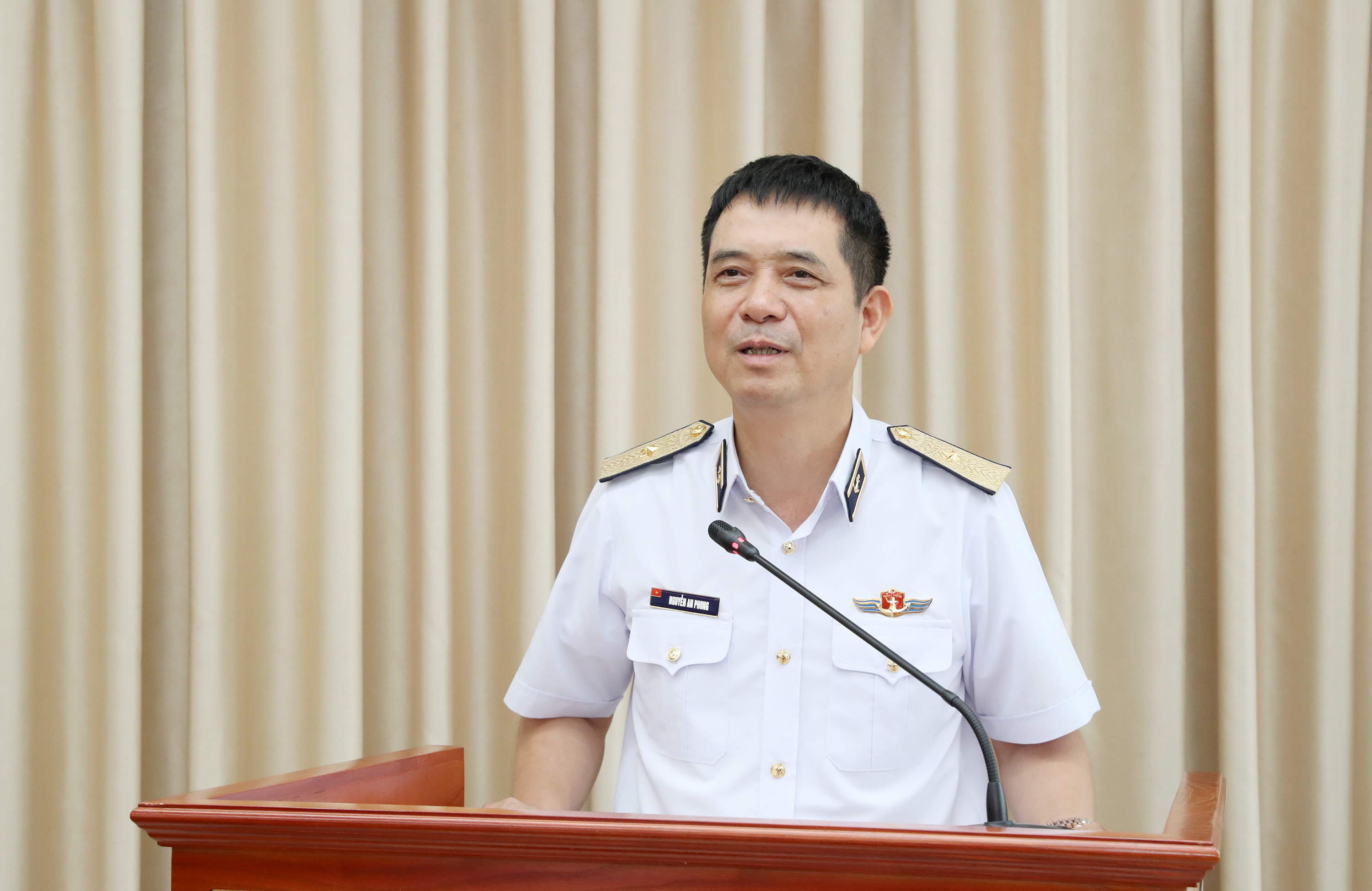 Thiếu tướng Nguyễn An Phong phát biểu động viên, chúc mừng cán bộ, phóng viên Báo Hải quân Việt Nam