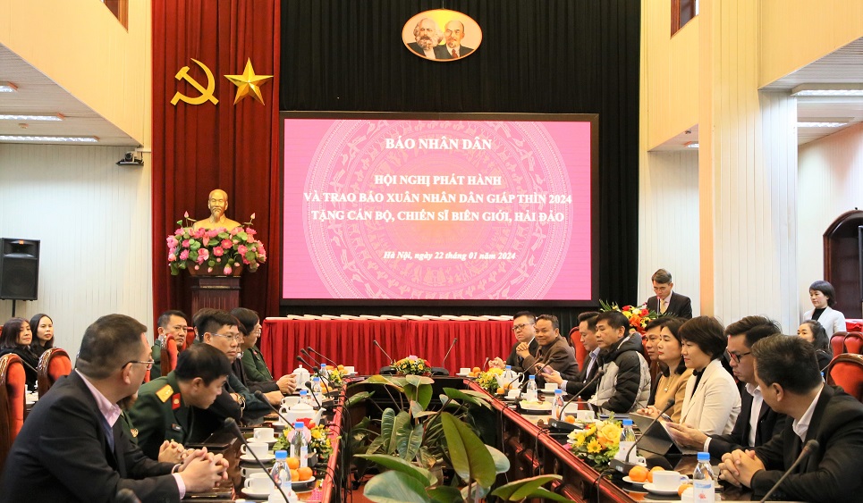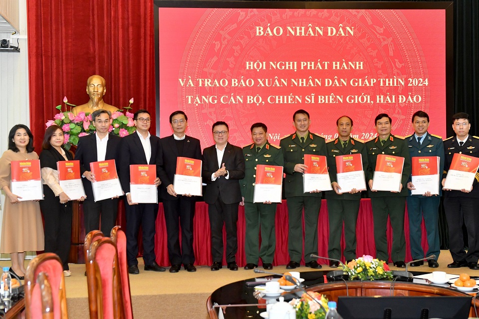 Chiều 22/1, tại Hà Nội, Báo Nhân Dân tổ chức Hội nghị phát hành và trao ấn phẩm báo Nhân Dân Xuân Giáp Thìn 2024 tặng cán bộ, chiến sĩ đang công tác ở các vùng biên giới, hải đảo của Tổ quốc.