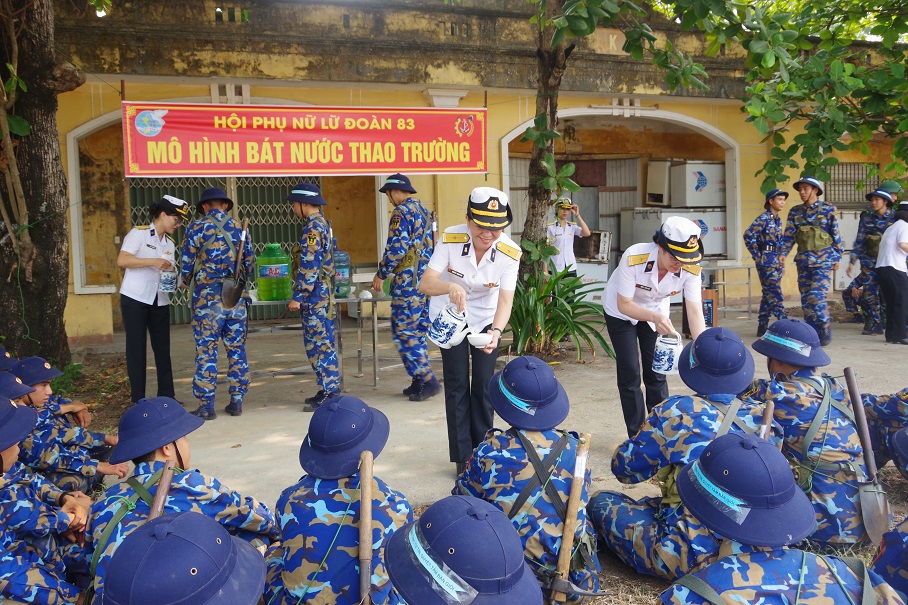Ngày 10/4, tại TP. Đà Nẵng, Hội phụ nữ cơ sở Lữ đoàn Công binh 83 tổ chức chương trình “Bát nước thao trường” phục vụ cán bộ, chiến sĩ mới của Tiểu đoàn 885 huấn luyện trên thao trường.
