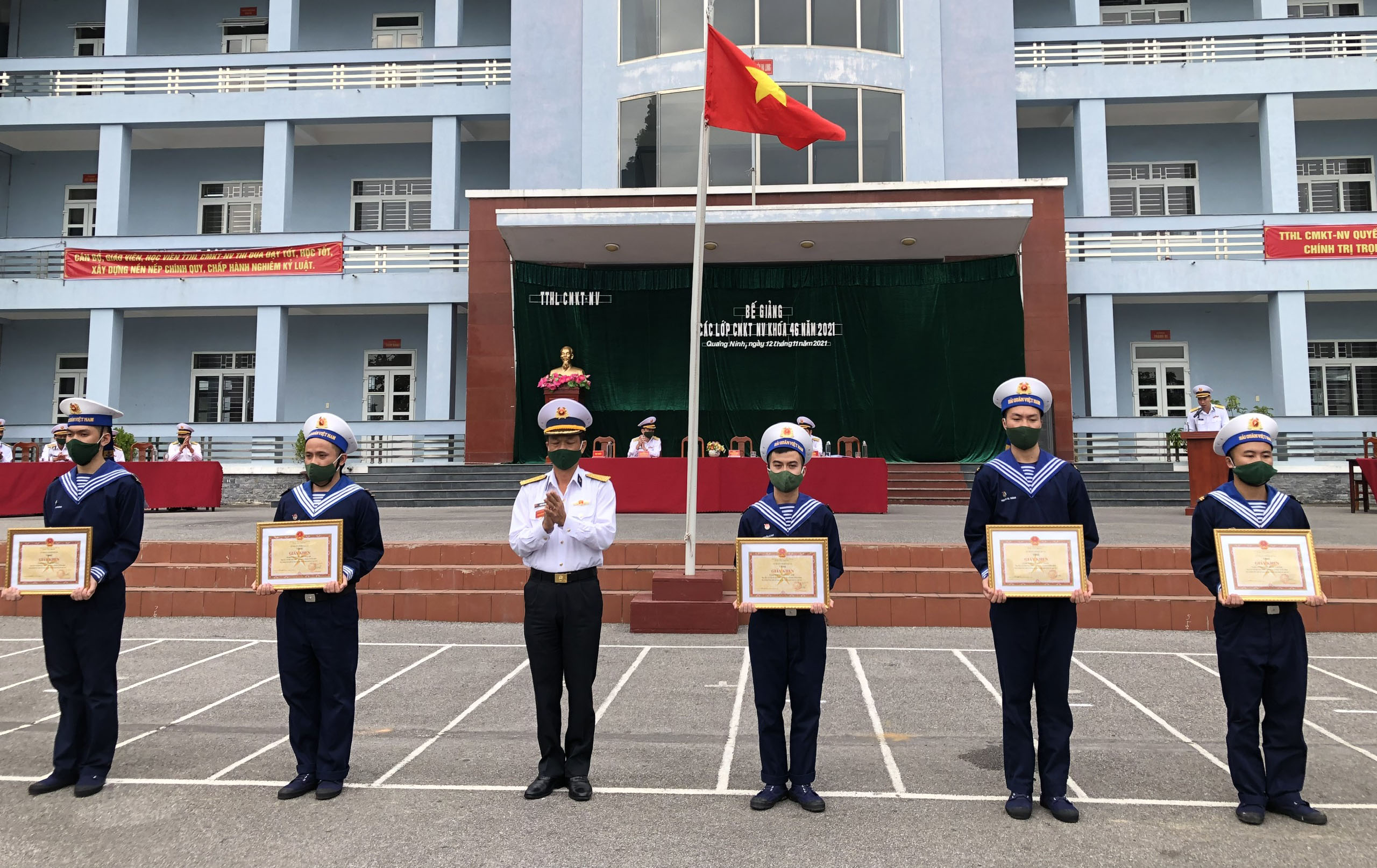 Chiều 12/11, tại Quảng Ninh, Trung tâm Huấn luyện chuyên môn kỹ thuật, nghiệp vụ (CMKT, NV), Lữ đoàn 170, Vùng 1 Hải quân tổ chức bế giảng đào tạo hạ sĩ quan CMKT, NV khóa 46. Thượng tá Nguyễn Anh Tuấn, Phó Tham mưu trưởng Vùng 1 dự và chỉ đạo.