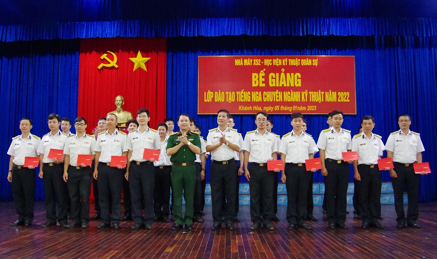 Ngày 5/1, tại TP. Cam Ranh, tỉnh Khánh Hòa, Nhà máy X52, Cục Kỹ thuật Hải quân phối hợp với Học viện Kỹ thuật quân sự (KTQS) tổ chức Bế giảng lớp đào tạo tiếng Nga chuyên ngành kỹ thuật năm 2022. Đại tá Huỳnh Xuân Sinh, Giám đốc Nhà máy chủ trì.
