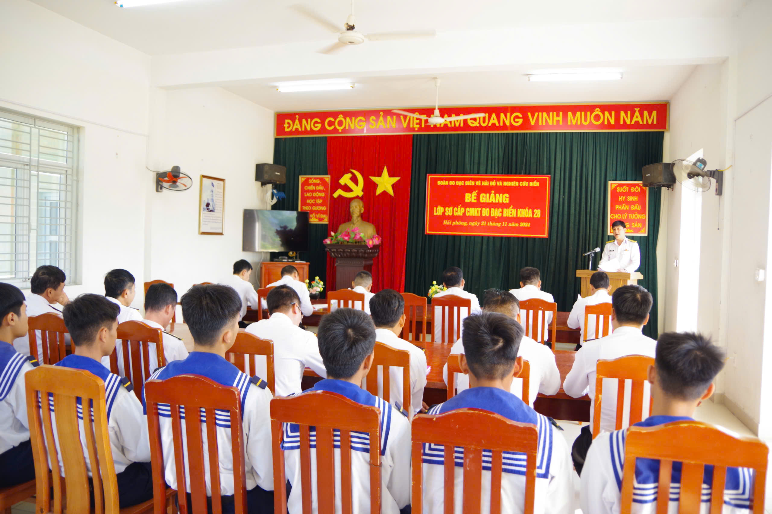 Sáng 21/11, tại Hải Phòng, Đoàn Đo đạc biên vẽ hải đồ và nghiên cứu biển, Bộ Tham mưu Hải quân tổ chức bế giảng lớp sơ cấp chuyên môn kỹ thuật đo đạc biển Khóa 28 năm 2024. Thượng tá Hoàng Đức Phương, Phó Đoàn trưởng, Tham mưu trưởng dự và chỉ đạo.