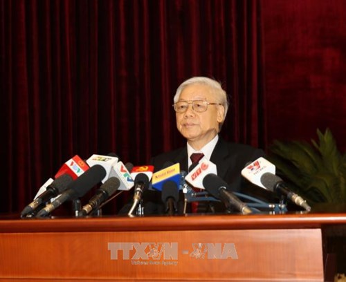 Trong phát biểu bế mạc, Tổng Bí thư Nguyễn Phú Trọng nhấn mạnh: Để có thể hoàn thành các mục tiêu, nhiệm vụ đề ra, cần tiếp tục phát huy sức mạnh đại đoàn kết toàn dân, tinh thần năng động, sáng tạo, quyết liệt trong lãnh đạo, chỉ đạo tổ chức thực hiện. Tập trung ưu tiên xây dựng, hoàn thiện thể chế, tăng cường kỷ cương, kỷ luật để cải thiện mạnh mẽ hơn môi trường đầu tư kinh doanh. Đẩy mạnh cơ cấu lại, đổi mới và nâng cao hiệu quả doanh nghiệp nhà nước, các đơn vị sự nghiệp công lập; phát triển kinh tế tư nhân thực sự trở thành một động lực quan trọng của nền kinh tế.