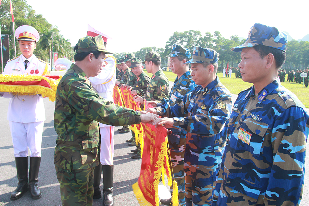 Trao cờ cho các đơn vị đạt thành tích cao trong Hội thi sáng kiến cải tiến trang bị huấn luyện.