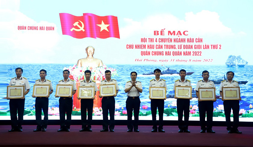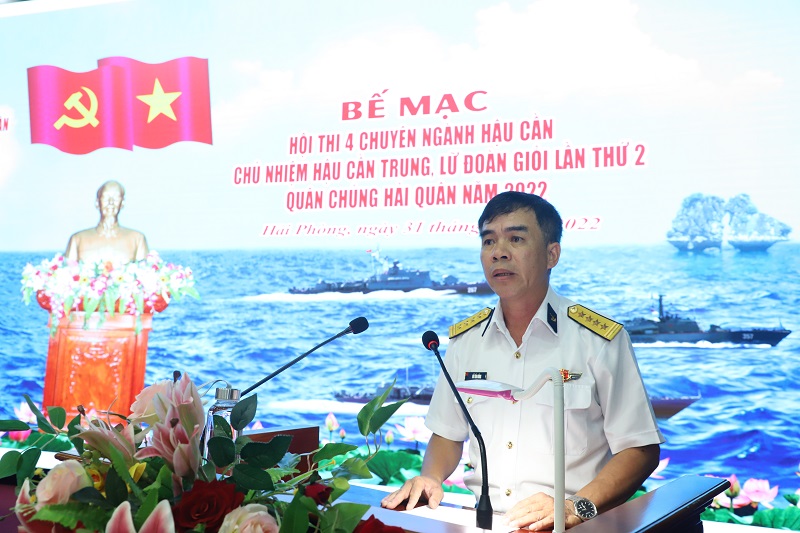 Chiều 31/8, tại Bộ Tư lệnh Vùng 1 Hải quân (TP. Hải Phòng), Hội thi 4 chuyên ngành hậu cần và chủ nhiệm hậu cần trung, lữ đoàn giỏi lần thứ 2, năm 2022 đã bế mạc. Đại tá Nguyễn Duy Thiều, Chủ nhiệm Hậu cần Hải quân chủ trì.