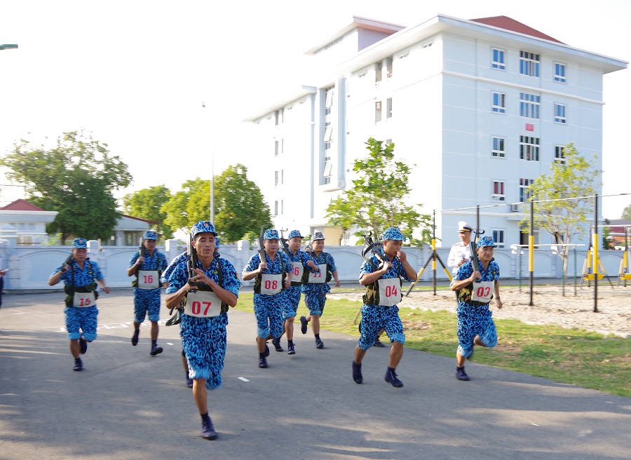 Các thí sinh thực hiện nội dung chạy vũ trang