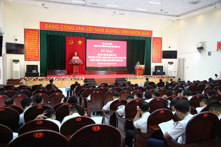 Ngày 27/10, tại Học viện Hải quân (TP. Nha Trang, tỉnh Khánh Hòa), Trung tâm Thông tin khoa học quân sự (KHQS) Bộ Quốc phòng bế mạc Hội thi cán bộ, nhân viên “Thư viện số dùng chung trong Bộ Quốc phòng” giỏi Ngành thông tin khoa học quân sự năm 2022. Đại tá Nguyễn Quang Trung, Giám đốc Trung tâm Thông tin khoa học quân sự Bộ Quốc phòng, Trưởng ban tổ chức hội thi chủ trì bế mạc.