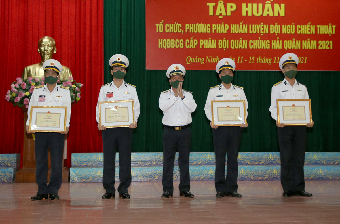 Chiều 15/11, tại Lữ đoàn 147, Vùng 1 Hải quân (Quảng Ninh), Quân chủng Hải quân tổ chức bế mạc tập huấn tổ chức, phương pháp huấn luyện đội ngũ chiến thuật Hải quân đánh bộ cơ giới cấp phân đội năm 2021. Chuẩn Đô đốc Nguyễn Thế Tốt, Phó Tham mưu trưởng Hải quân chủ trì.