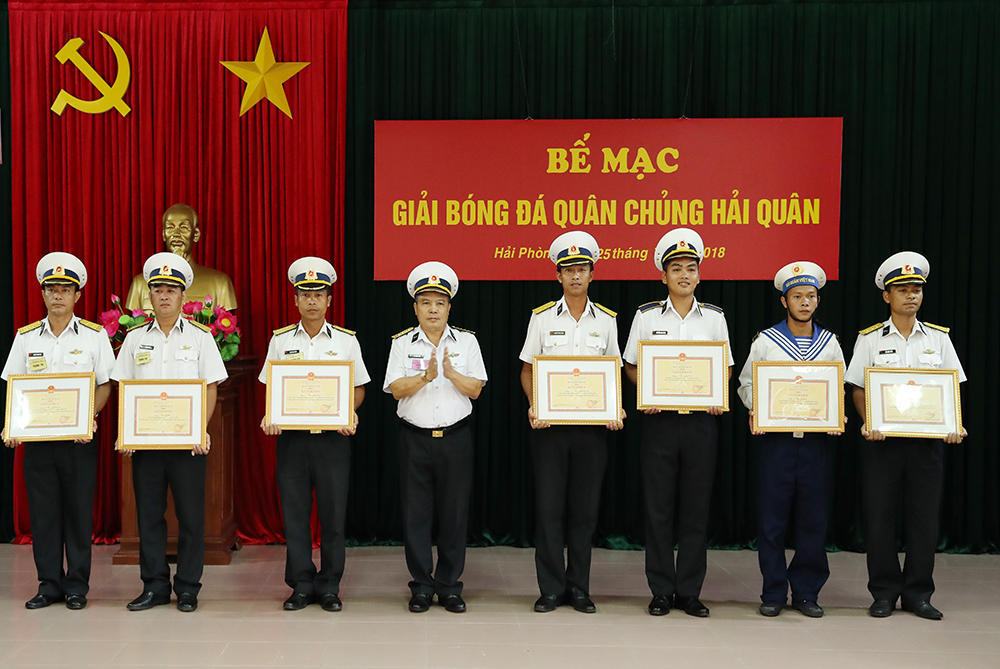 Chiều 25-7, tại Hải Phòng, Quân chủng Hải quân tổ chức bế mạc và trao giải cho các tập thể, cá nhân đạt thành tích cao tại Giải bóng đá Quân chủng Hải quân năm 2018. Đại tá Lê Xuân Thủy, Phó Tham mưu trưởng Hải quân, Trưởng Ban tổ chức giải dự và chủ trì lễ bế mạc.