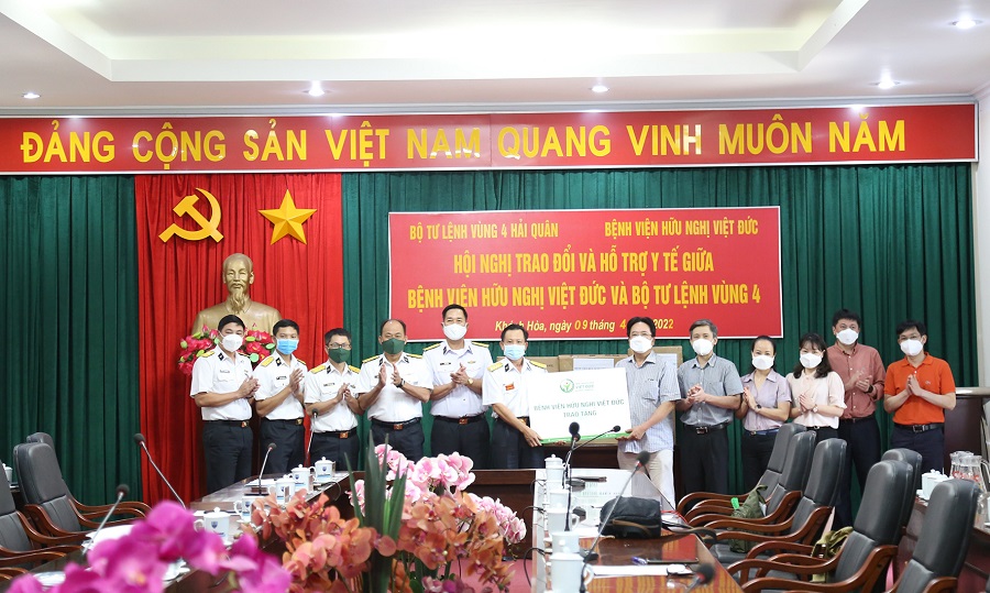 Sáng 9/4, tại TP. Cam Ranh, tỉnh Khánh Hòa, đoàn công tác của Bệnh viện Hữu nghị Việt Đức do Giáo sư, Tiến sĩ Trần Bình Giang, Giám đốc bệnh viện làm trưởng đoàn đã đến thăm và trao tặng thiết bị y tế cho Vùng 4 Hải quân. Chuẩn Đô đốc Hoàng Hồng Hà, Phó Tư lệnh Hải quân tham dự. Đại tá Nguyễn Thiên Quân, Phó Tư lệnh Vùng 4 và thủ trưởng phòng, ban chức năng của Vùng tiếp đoàn.