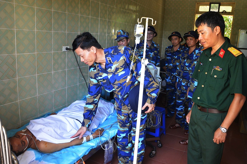 Chuẩn Đô đốc Nguyễn Trọng Bình, Phó Tư lệnh, Tham mưu trưởng Hải quân thăm bệnh nhân Trà tại Bệnh xá đảo Nam Yết