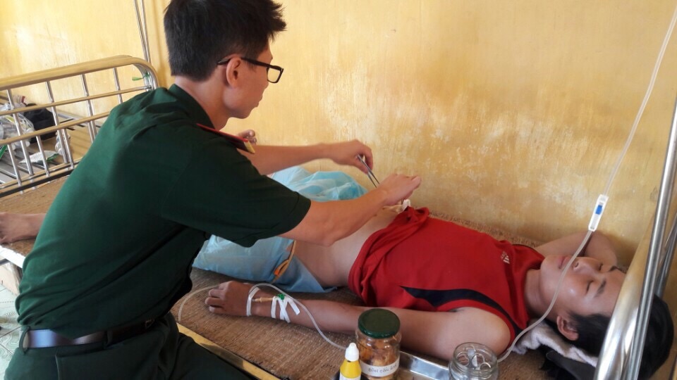Trung úy, bác sĩ Trần Quang Dũng, bệnh xá trưởng đảo Phan Vinh cho biết: Bệnh nhân bị viêm khúc mạc ruột thừa, khi mổ ra ruột thừa đã bị vỡ, ổ bụng dịch tràn nhiều.