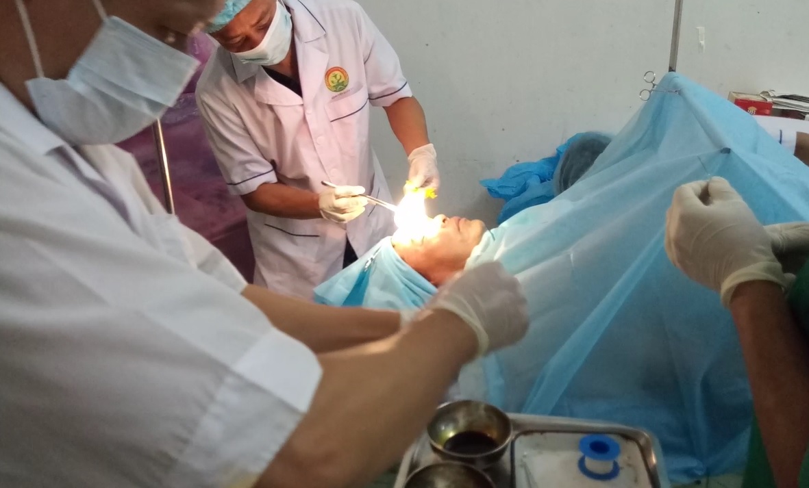 Kíp y, bác sĩ Bệnh xá đảo Phan Vinh khâu vết thương cho Bệnh nhân Phạm Một