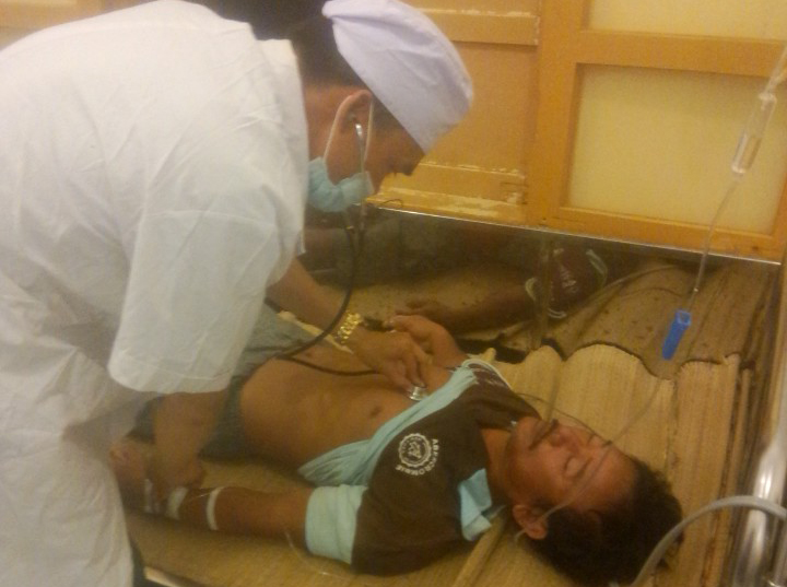 20h15 phút ngày 4-9, Bệnh xá đảo Sinh Tồn Đông đã tiếp nhận và cấp cứu ngư dân Thái Văn Long. Lúc này anh Long ở trong trạng thái tiếp xúc được nhưng chậm, giảm cảm giác ở hai chân. Qua hội chẩn, các y, bác sĩ Bệnh xá chẩn đoán anh Long bị chấn thương não, đột quỵ.