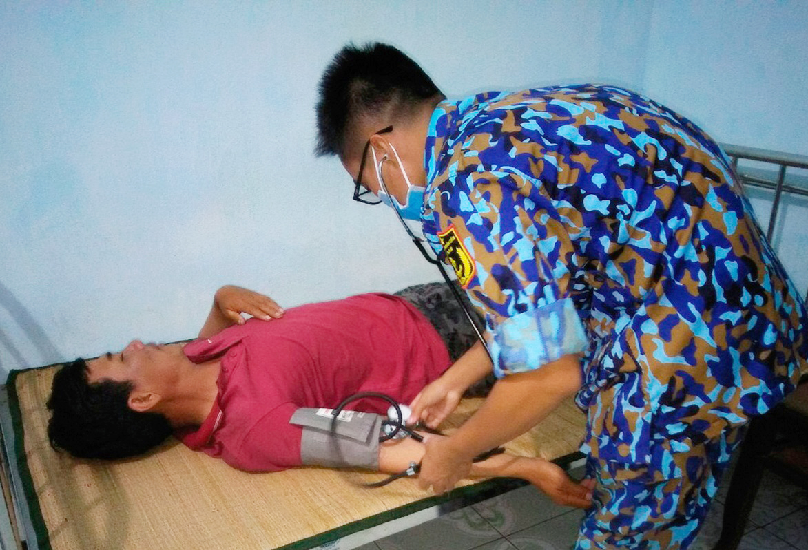 Quân y đảo Sơn Ca thăm khám cho bệnh nhân Nguyễn Văn Thắng