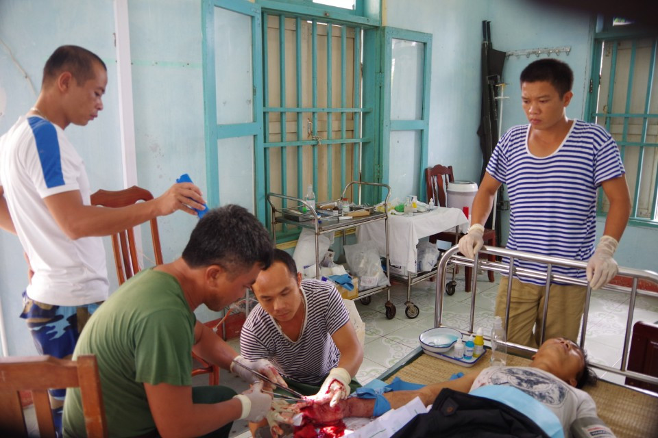 Bệnh nhân Trần Thanh Tòng được cấp cứu tại Bệnh xá đảo Sơn Ca