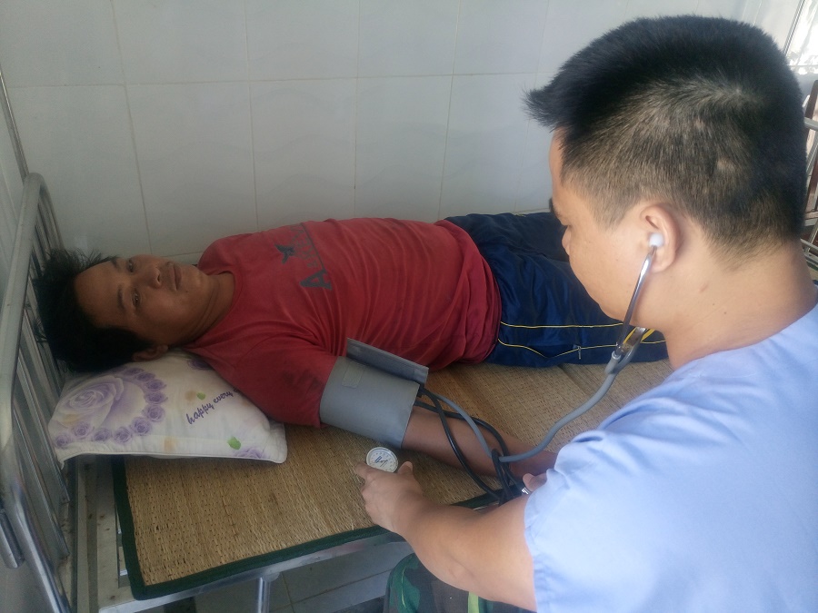 Bác sĩ Bệnh xá đảo Song Tử Tây thăm khám cho bệnh nhân Hồ Tấn Vương