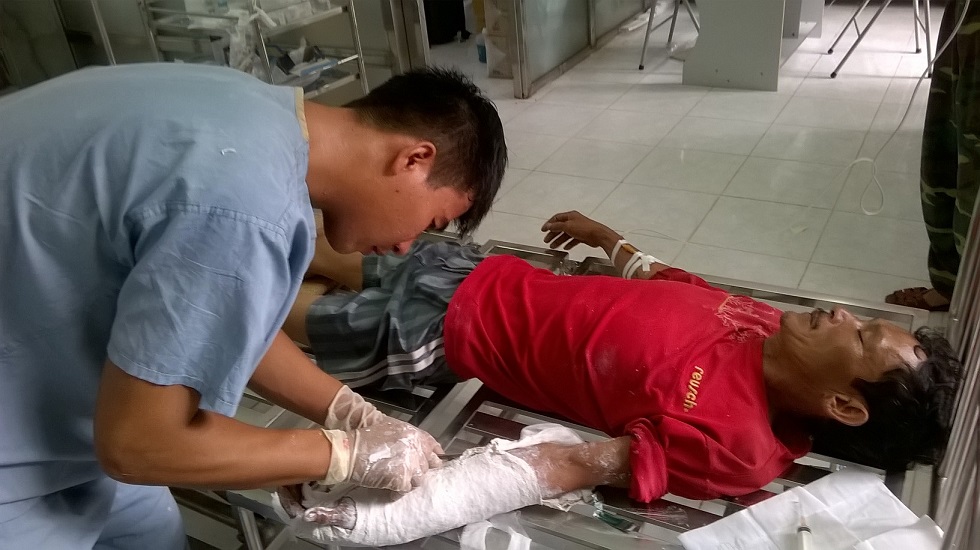 Ngày 12-9, ngư dân Thái Văn Rô khi đang thao tác kéo cáp cẩu cá ở khu vực biển Trường Sa thì bị dây cáp quật vào mặt sau cẳng tay trái. Sau tai nạn, ngư dân Rô không vận động được cổ tay trái, 1/3 cẳng tay bị phù nề, biến dạng. Các ngư dân trên tàu đã sơ cứu và băng bó nhưng vết thương của anh Rô không thuyên giảm.