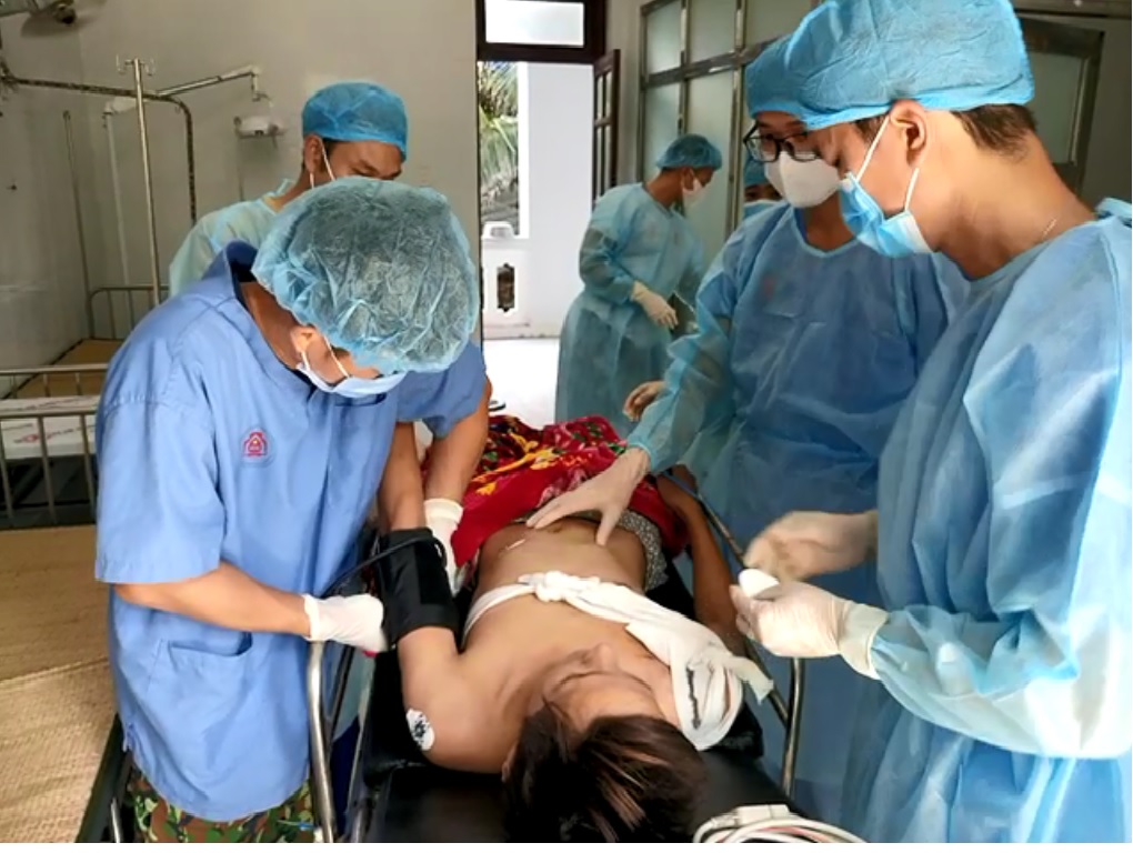 Các y bác sĩ bệnh xá đảo Song Tử Tây cấp cứu bệnh nhân Phương